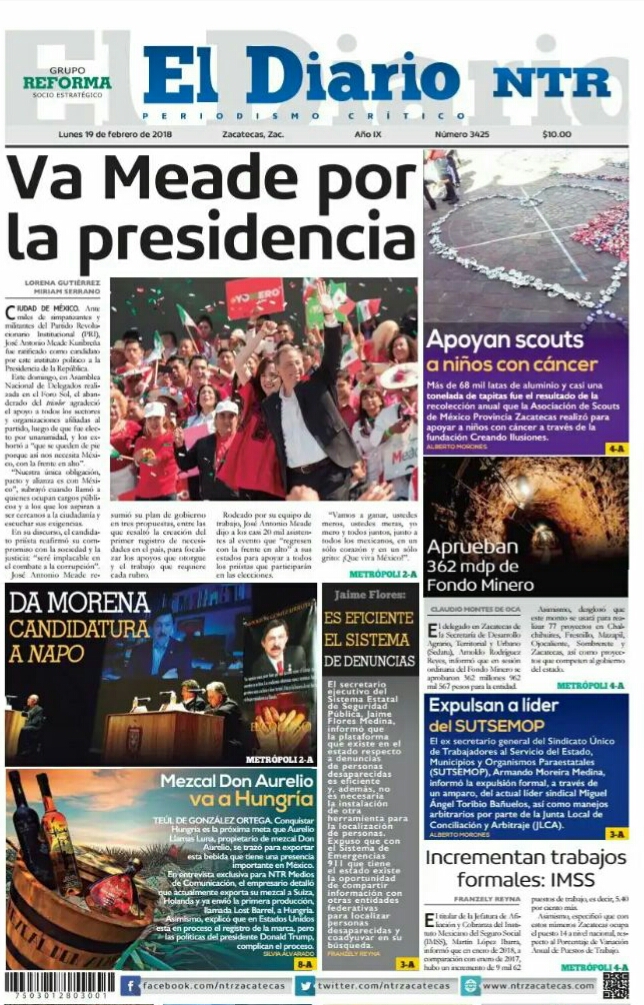 Locales Portadas de diarios impresos Lunes 19 febrero Admin 19 febrero, 2018 132 Views O Puedes compartir esta noticia en tus redes sociales.
