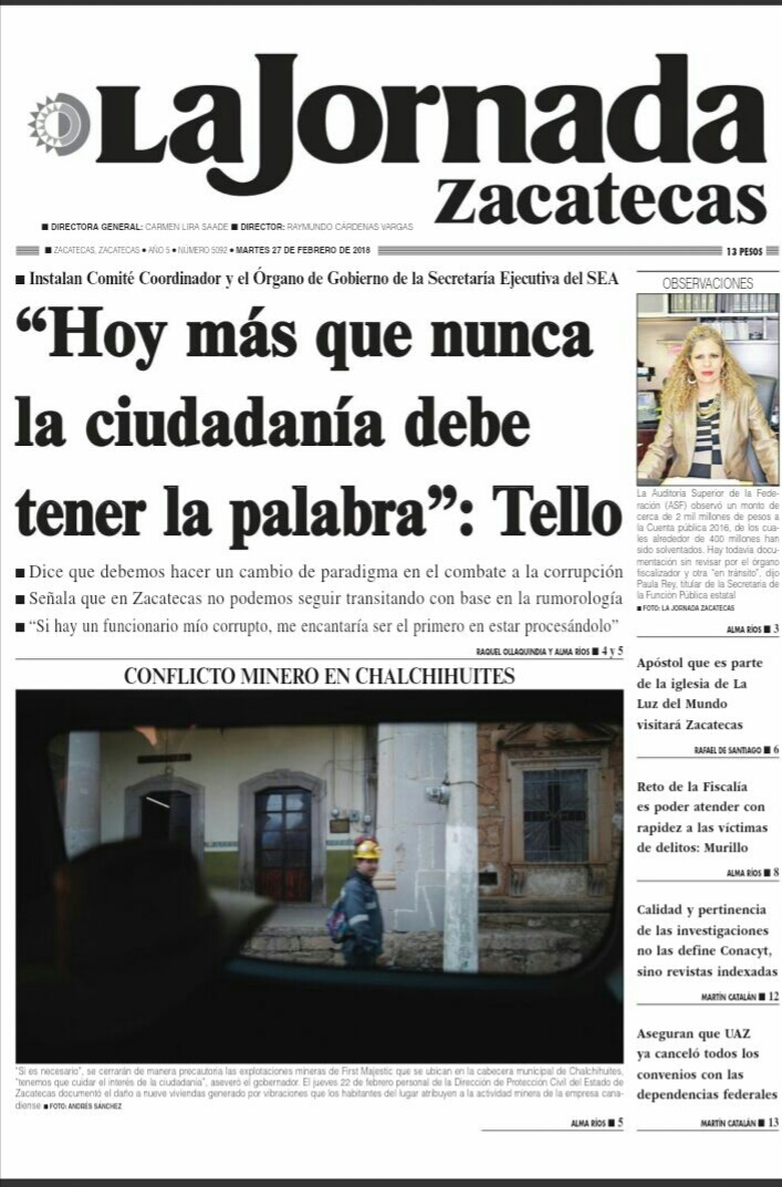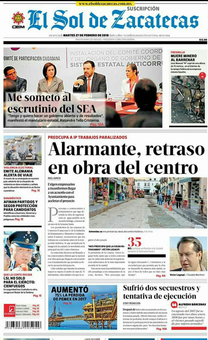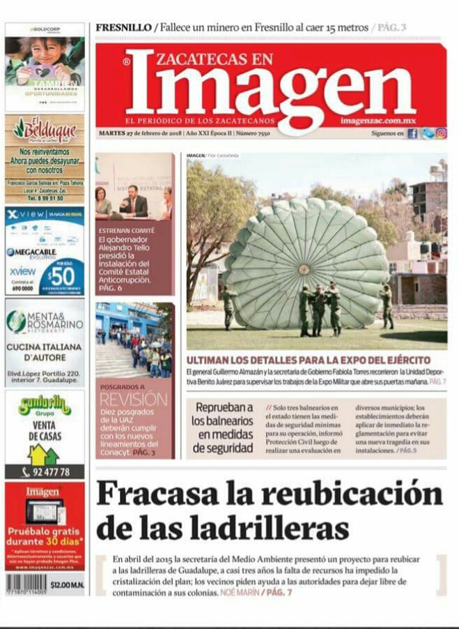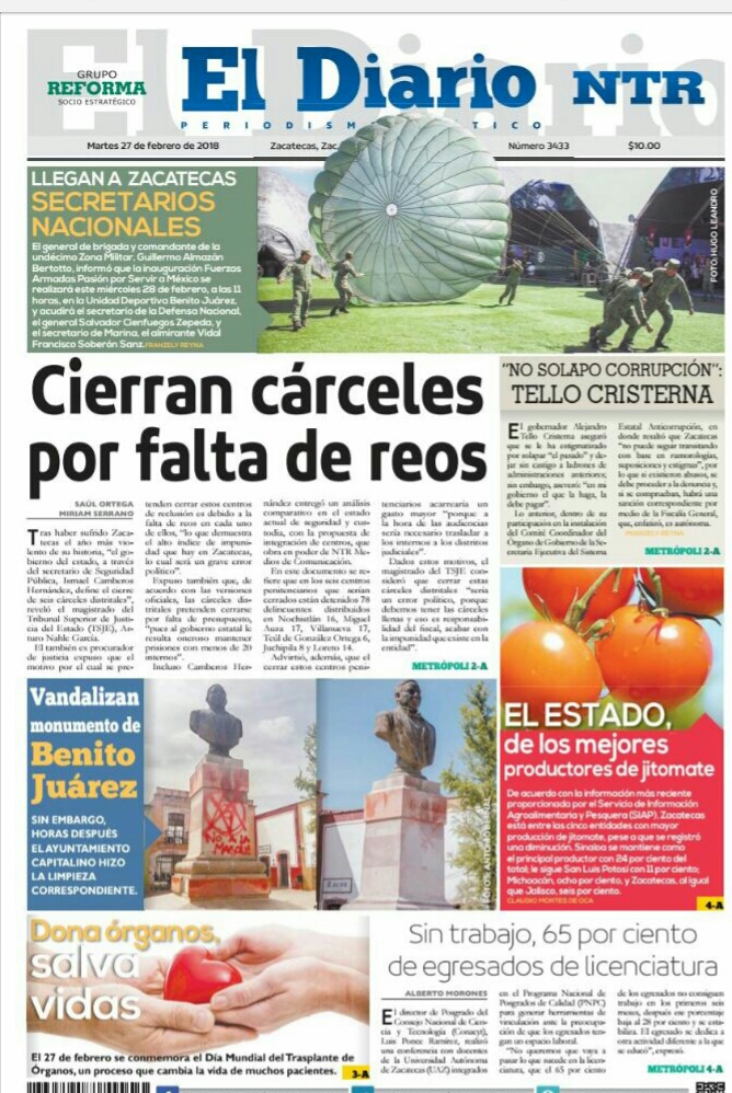 Locales Portadas de diarios impresos Zacatecas martes 27 febrero Admin 27 febrero, 2018 204 Views Puedes compartir esta noticia en tus redes sociales.