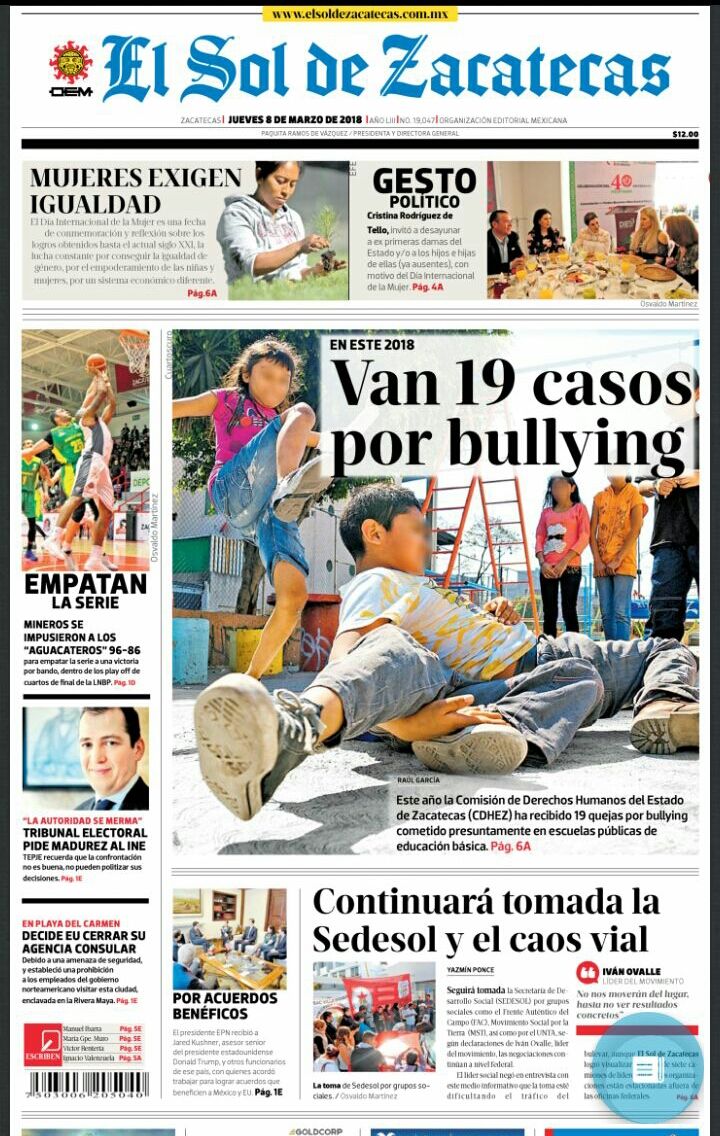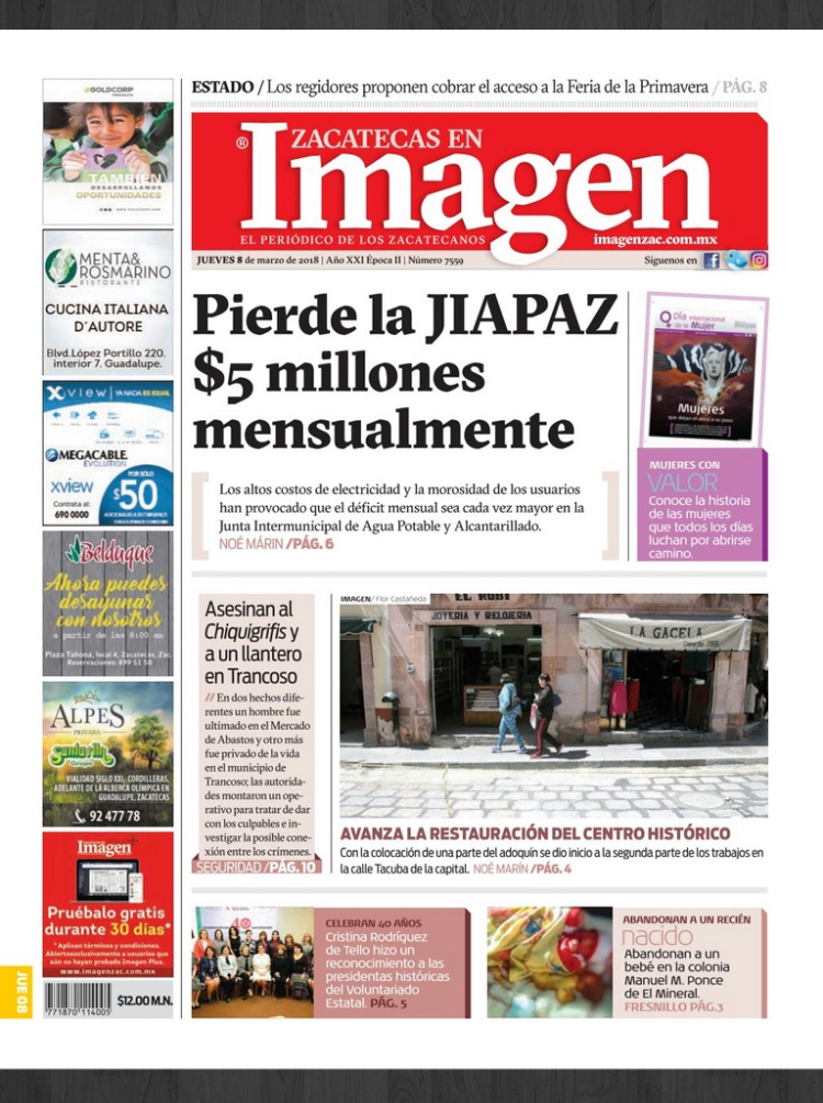 Locales Portadas diarios impresos Zacatecas jueves 8 de marzo Admin 8 marzo, 2018 517 Views Puedes compartir esta noticia en tus redes sociales.