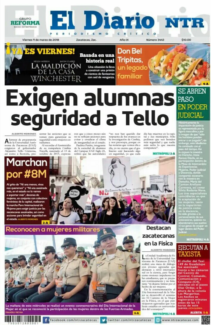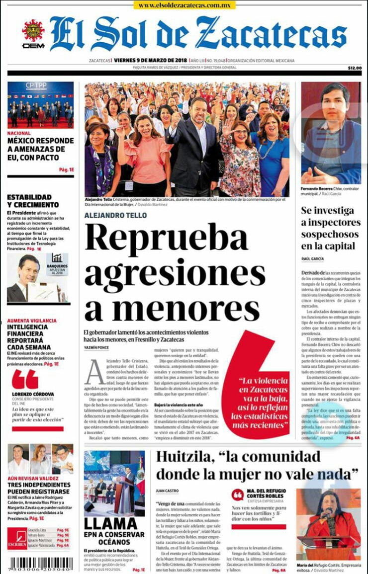 Locales Portadas de diarios impresos Zacatecas viernes 9 de marzo Admin 9 marzo, 2018 211 Views Puedes compartir esta noticia en tus redes sociales.