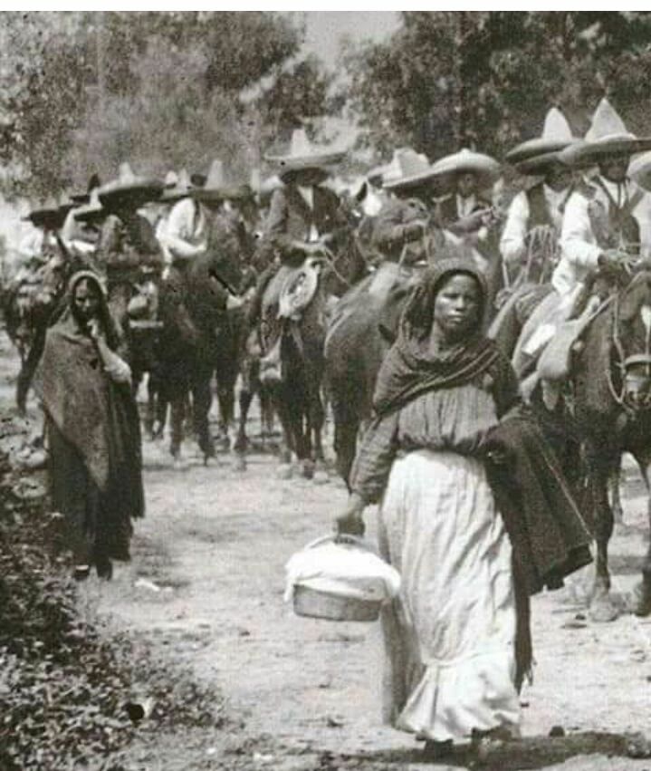 En la izquierda está un señor de abundante barba blanca, carga en la espalda un viejo morral y es sostenido por dos muletas de madera que le quedan chicas. Le sigue una mujer de cabello maltratado y esponjado; cierra la pinza un hombre que usa un desgastado sombrero revolucionario, trae una canasta en el brazo izquierdo y en el hombro derecho le cuelga un sucio bolso de ixtle.