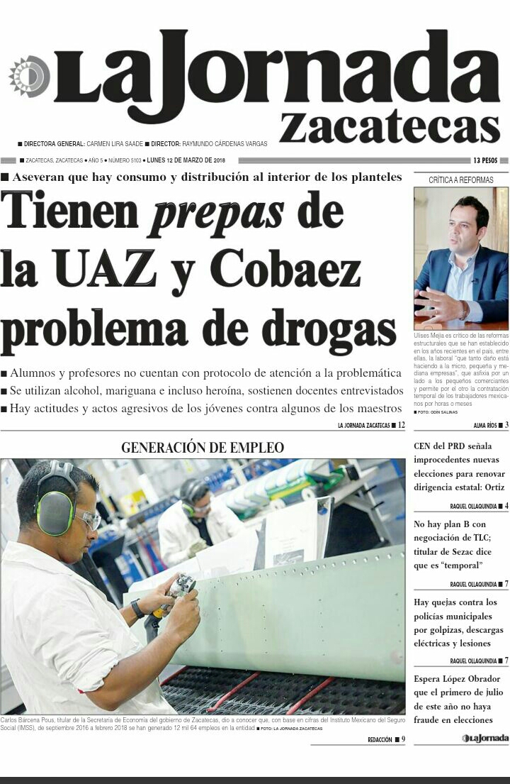 Locales Portadas diarios impresos Zacatecas lunes 12 de marzo Admin 12 marzo, 2018 331 Views Puedes compartir esta noticia en tus redes sociales.