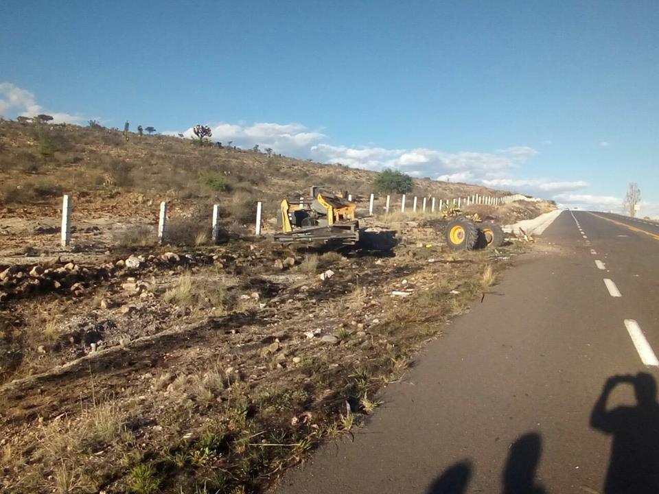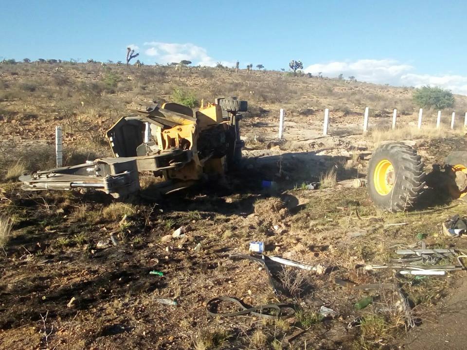 SOMBRERETE. Un camión con pasajeros a bordo se impactó contra una máquina retroexcavadora, accidente que dejó como saldo una persona muerta y varias heridas.
