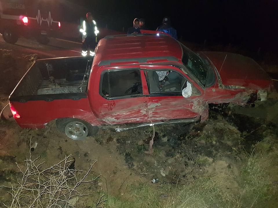 Se trata de un vehículo Ford, Sport, pick-up, rojo, cuyo conductor, de nombre José Antonio Castro Ávila, de 38 años, originario de San Antonio de los Tepetates, Sombrerete, perdió el control de la unidad sobre el kilómetro 130.