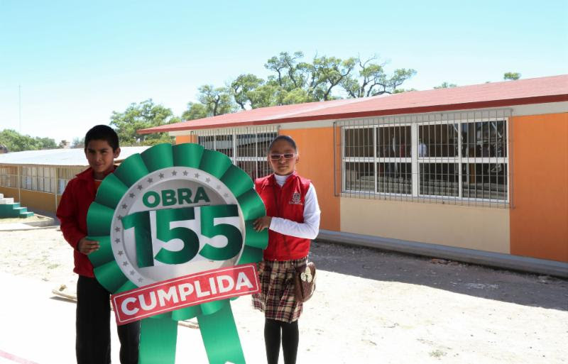 También se entregaron las obras 155 y 156 en la primaria Luis de la Rosa Oteiza y el Jardín de Niños Quintiliano, en la comunidad La Pendencia, donde se benefició a 186 y 98 alumnos, respectivamente.