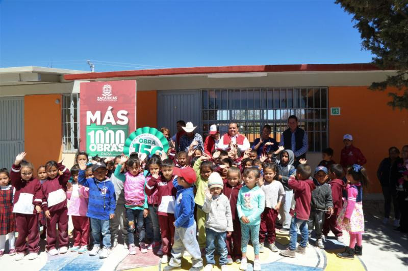 PINOS. Con una inversión superior a 3 millones de pesos, como parte del programa Más de Mil Obras para Zacatecas 2018, impulsado por el gobierno estatal, fueron entregadas las acciones 132, 127, 155, 156, 153, 137 y 149, en beneficio de 715 estudiantes del municipio.