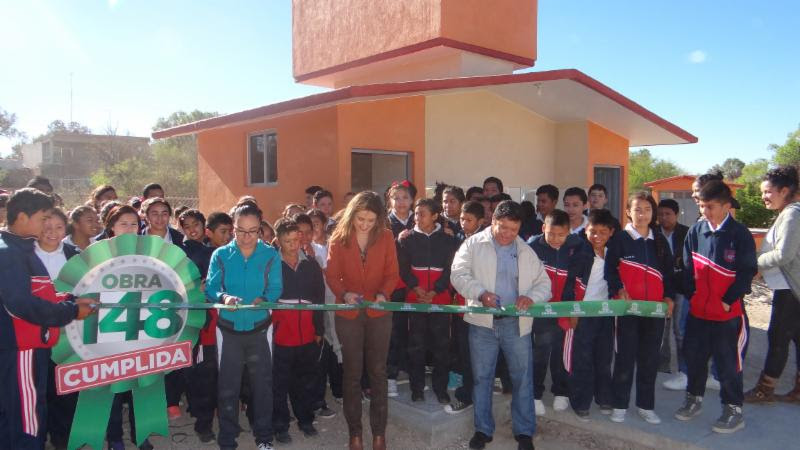 Tras entregar los servicios sanitarios en la telesecundaria Cuauhtémoc, en Santa María de los Ángeles, la funcionaria estatal dijo que esta obra tuvo una inversión de 619 mil 147 pesos y beneficiará a 94 alumnos.