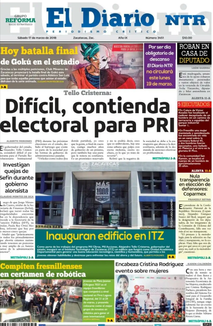 Locales Portadas de diarios impresos en Zacatecas sábado 17 de marzo Admin 17 marzo, 2018 810 Views Puedes compartir esta noticia en tus redes sociales.