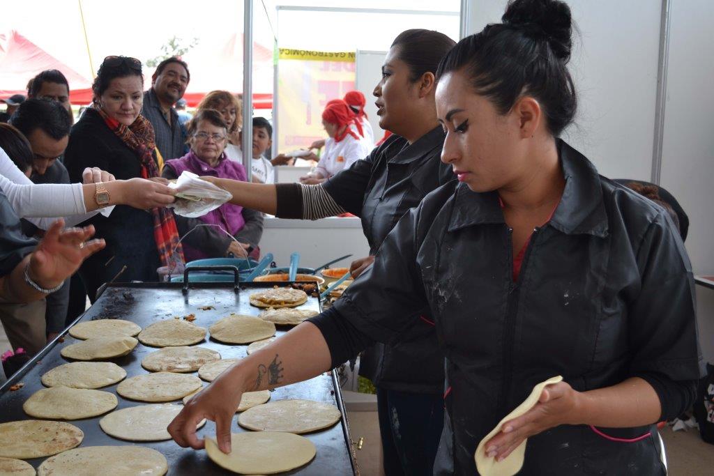 Cuarenta establecimientos, entre los que figuraron restaurantes y puestos de comida con tradición en el municipio, ofrecieron en la explanada del Monumento a la Bandera gorditas fritas, de horno, de harina y hechas a mano, las cuales fueron acompañadas de sabrosos guisados.