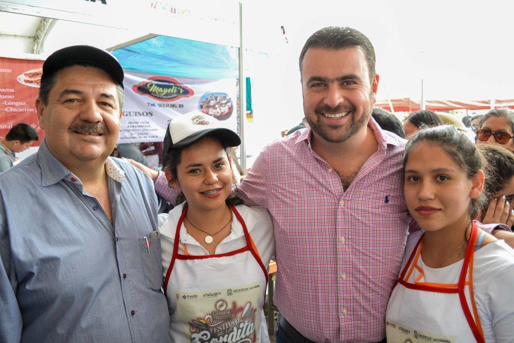 El alcalde de Fresnillo, José Haro de la Torre, acompañado por Paulina Suárez del Real, presidente honorífica del Sistema Municipal para el Desarrollo Integral de la Familia (SMDIF), asistió al festival, donde desayunaron y degustaron del sabor propio de la gastronomía fresnillense.