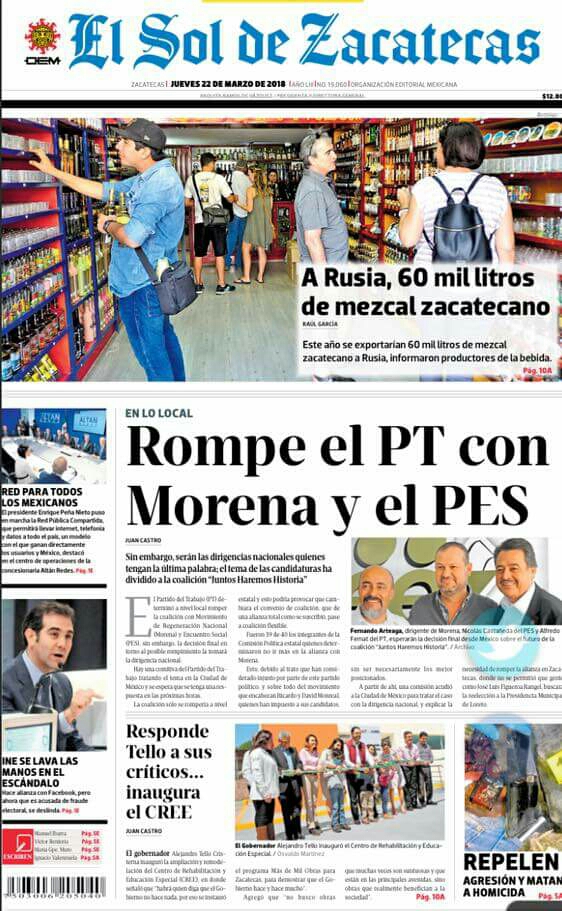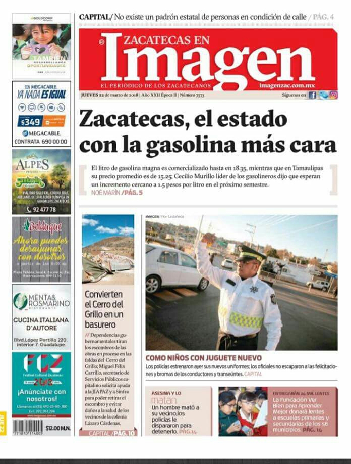 Locales Portadas de diarios impresos en Zacatecas jueves 22 de marzo Admin 22 marzo, 2018 305 Views Puedes compartir esta noticia en tus redes sociales.