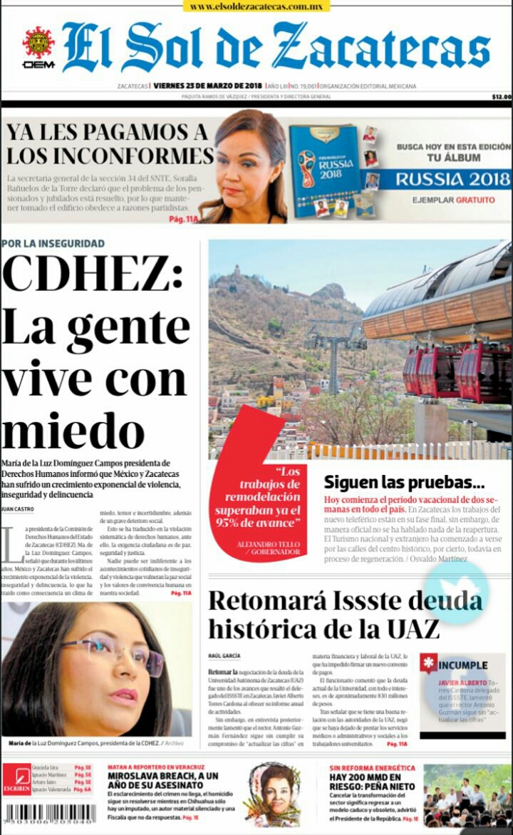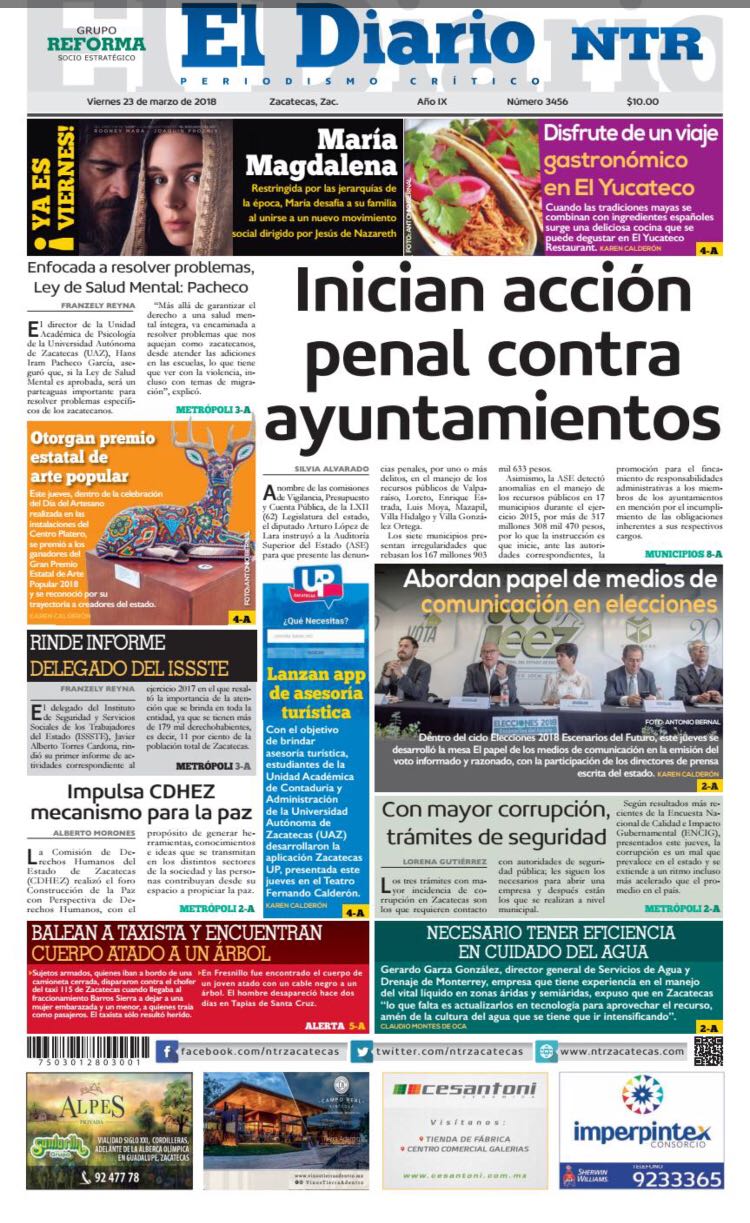 Locales Portadas de diarios impresos Zacatecas 23 de marzo Admin 23 marzo, 2018 135 Views Puedes compartir esta noticia en tus redes sociales.