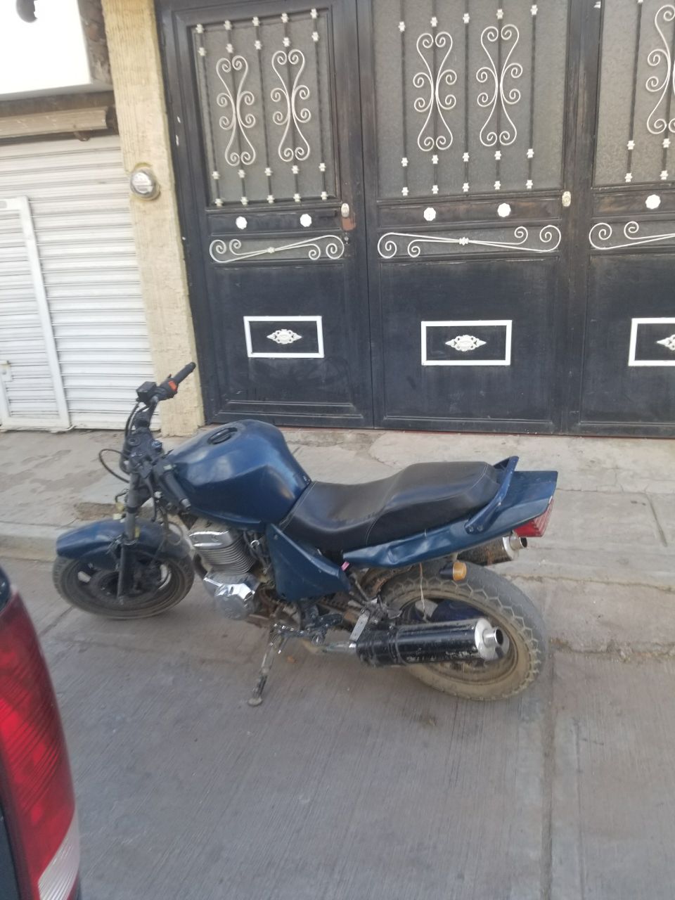 Finalmente, como resultado de los recorridos de seguridad y vigilancia implementados en Fresnillo, sobre la calle Daniel Peralta, de la colonia Industrial, elementos estatales detectaron una motocicleta que obstruía el acceso de una cochera.