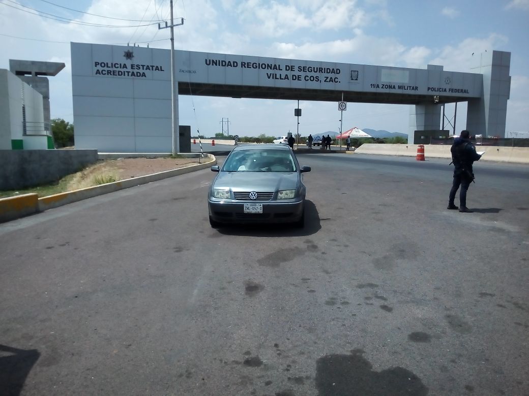 Posteriormente, en la Unidad Regional de Seguridad (Unirse) de Villa de Cos, elementos de la PEP le marcaron el alto al conductor de un vehículo Volkswagen, Jetta, gris, 2007, con placas ZHL-22-54, del estado.