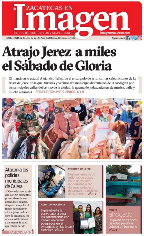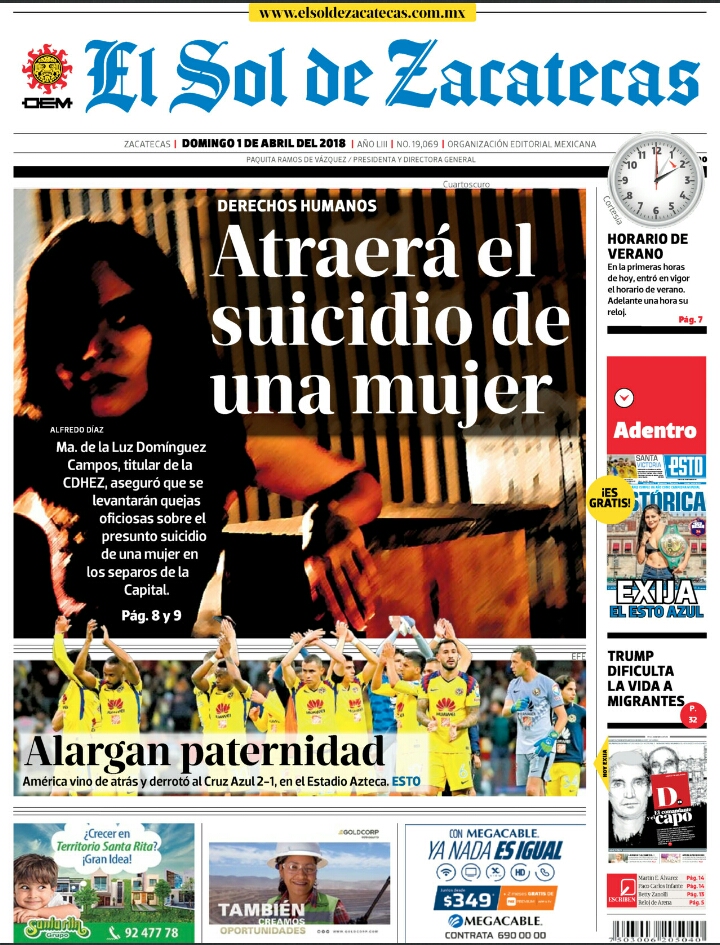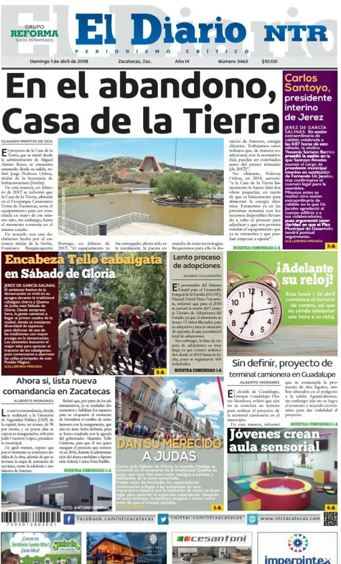 Locales Portadas de diarios impresos Zacatecas 1 de abril Admin 1 abril, 2018 79 Views Puedes compartir esta noticia en tus redes sociales.