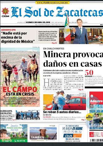 Locales Portadas de diarios impresos Zacatecas viernes 6 de abril Admin 6 abril, 2018 208 Views Síguenos en Facebook: Trópico de Cáncer Noticias. Puedes compartir esta noticia en tus redes sociales.