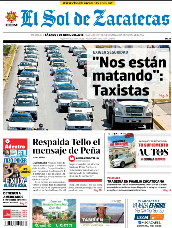 Locales Portadas de diarios impresos Zacatecas sábado 7 de abril Admin 7 abril, 2018 172 Views Puedes compartir esta noticia en tus redes sociales.