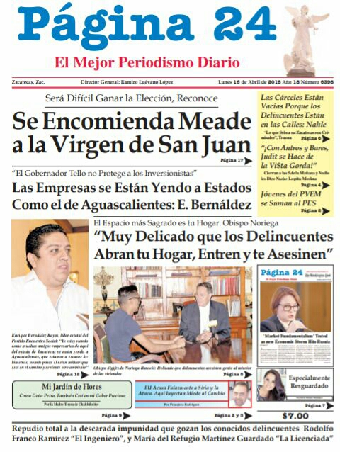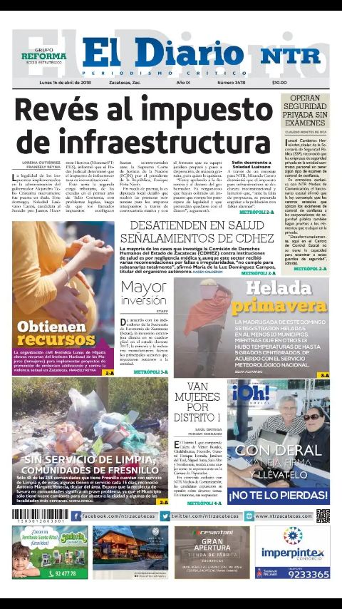 Locales Portadas de diarios impresos Zacatecas lunes 16 de abril Admin 16 abril, 2018 144 Views Búscanos en Facebook: Trópico de Cáncer Noticias. Puedes compartir esta noticia en tus redes sociales.
