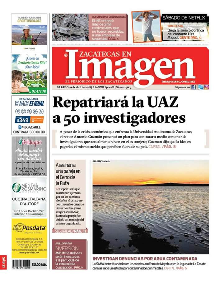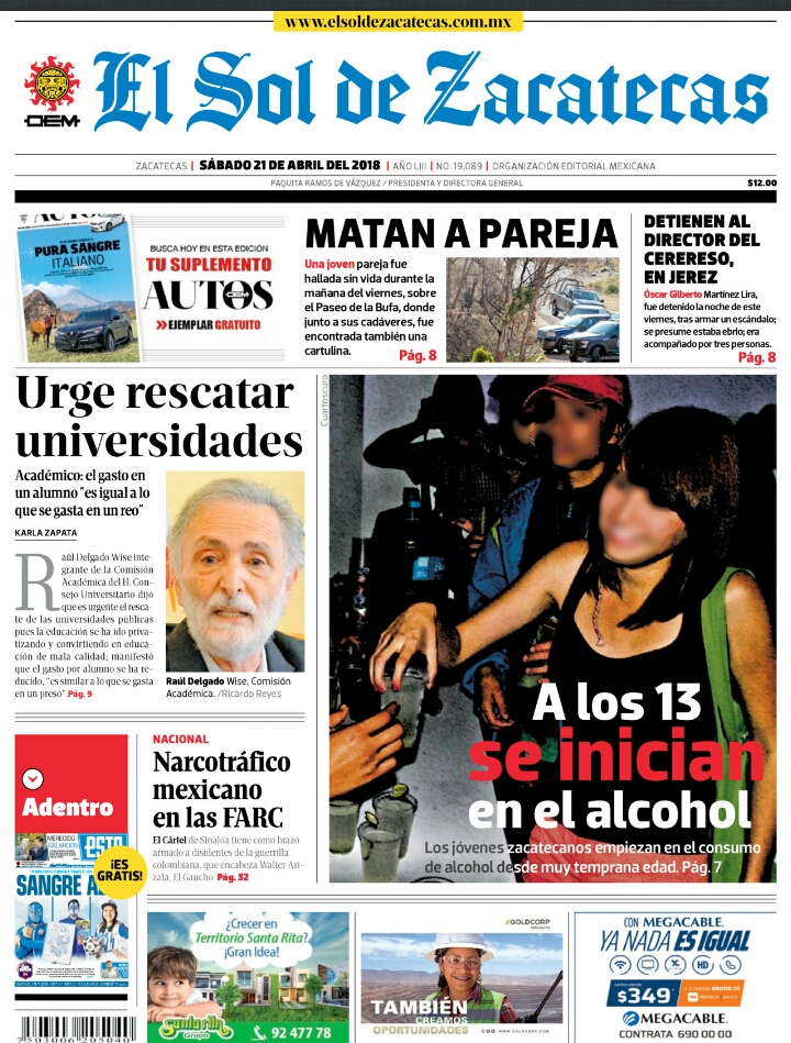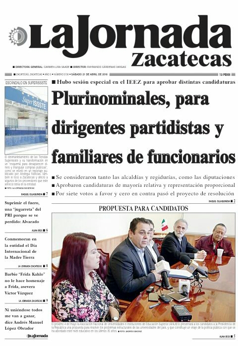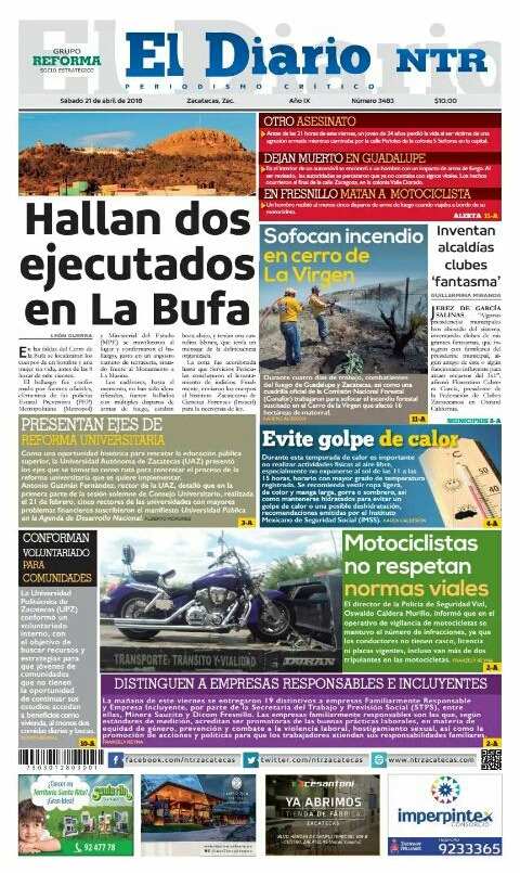 Locales Portadas de diarios impresos Zacatecas sábado 21 de abril Admin 21 abril, 2018 128 Views Puedes compartir esta noticia en tus redes sociales.