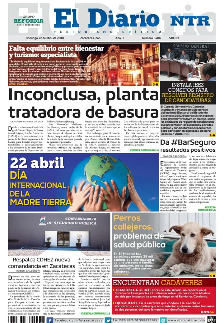 Locales Portadas de diarios impresos Zacatecas domingo 22 de abril Admin 22 abril, 2018 146 Views Puedes compartir esta noticia en tus redes sociales.