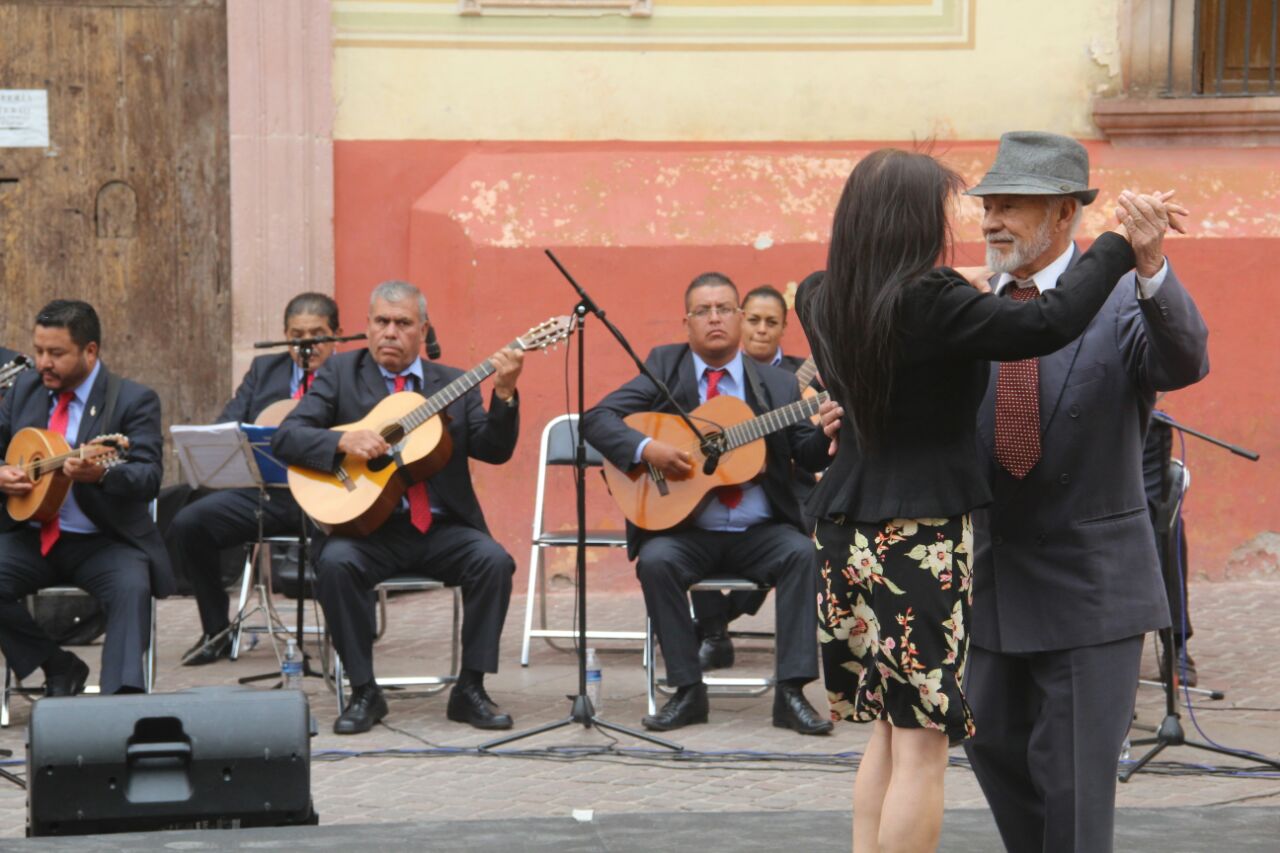 Reunidos en la Plazuela Miguel Auza, la Orquesta Típica del Ayuntamiento de Zacatecas brindó un concierto para deleite de los presentes en el tradicional Miércoles de Danzón, que fue engalanado por el club de baile La Bella Época, además de partir un pastel para recordar esta importante fecha.
