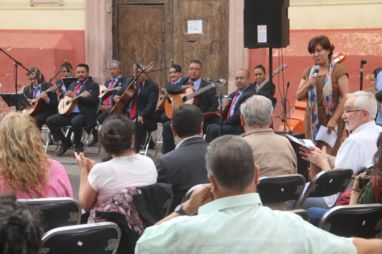 En presencia de Magdalena Okhuysen Casal, directora de Arte y Cultura del Ayuntamiento de Zacatecas, y Alfonso Vázquez Sosa, titular del IZC, felicitó a los integrantes de la orquesta y a sus artífices, y envió los saludos del gobernador Alejandro Tello Cristerna, quien brindará todo lo que sea necesario para lograr el nombramiento como Patrimonio Inmaterial.
