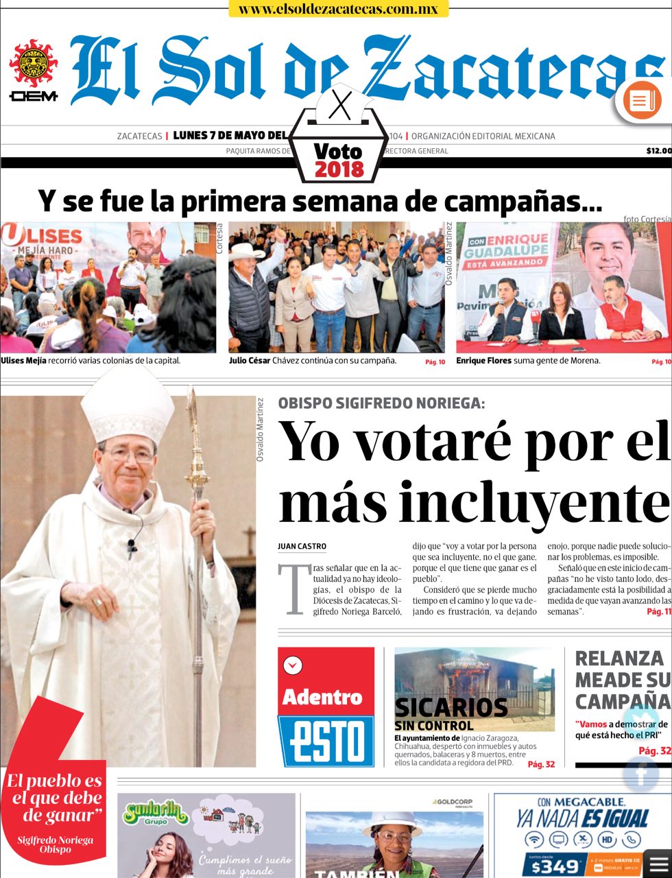 Locales Portadas de diarios impresos Zacatecas 7 de mayo Admin 7 mayo, 2018 123 Views Puedes compartir esta noticia en tus redes sociales.