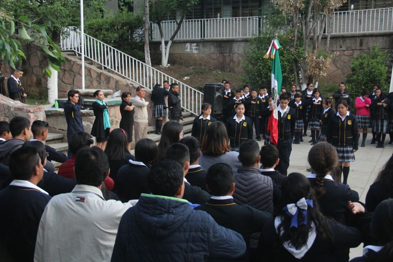 ZACATECAS. Con un llamado a combatir y a defender la patria desde el hogar, la alcaldesa Judit Guerrero López participó en la ceremonia de honores a la bandera en la Escuela Secundaria General 3 Emiliano Zapata, situada en la colonia Díaz Ordaz.