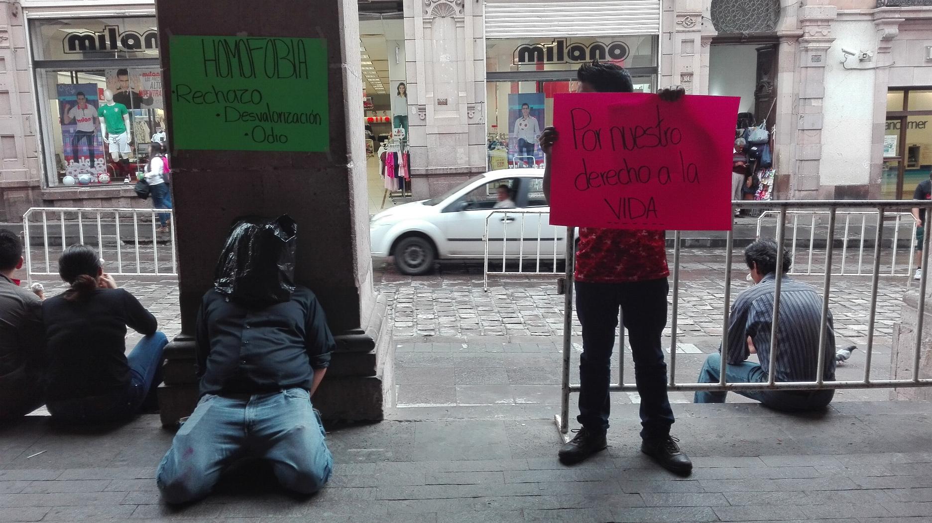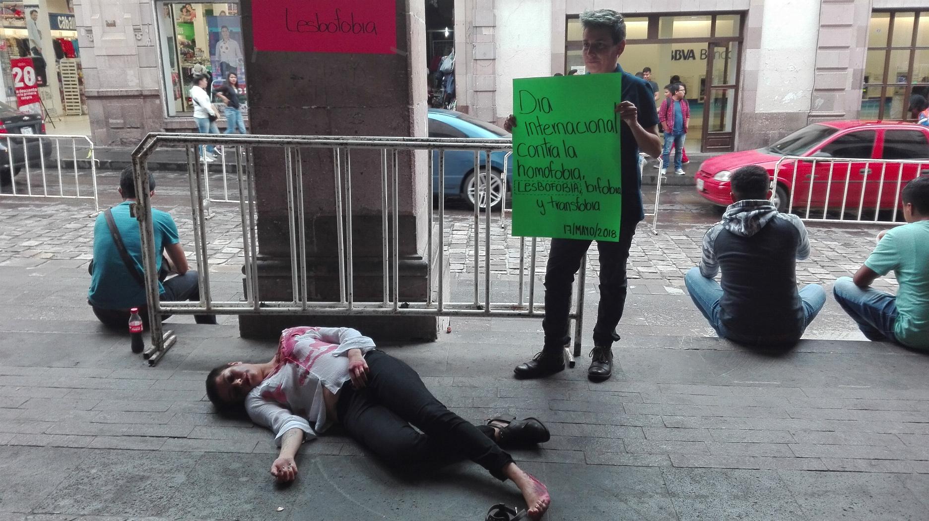 Asimismo, en lugares como las plazas Bicentenario e Independencia, así como en el Teatro Fernando Calderón, se presentó una escenificación de caídos por la intolerancia por tener preferencias sexuales diferentes.