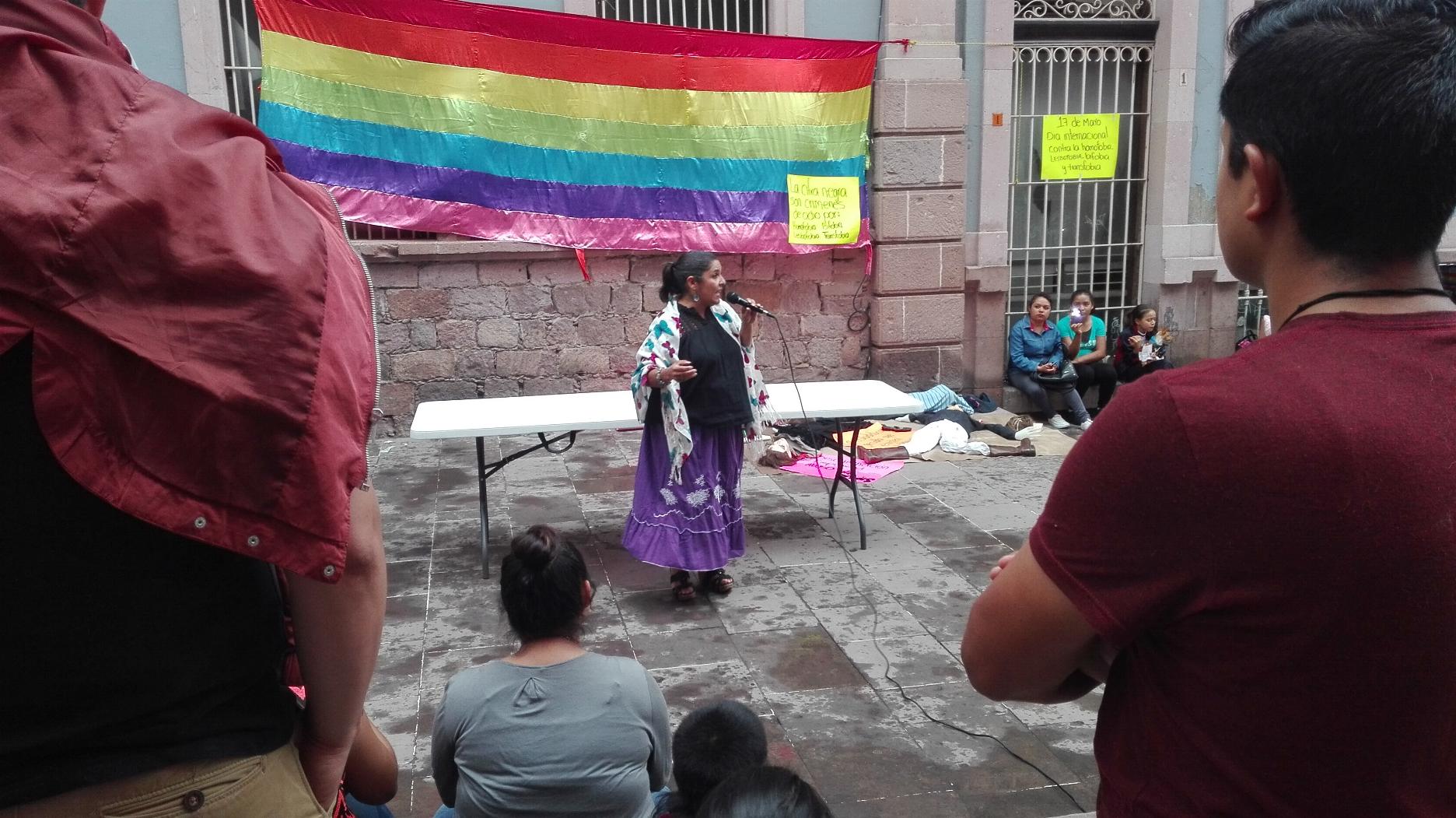 ZACATECAS. En la conmemoración del Día Internacional contra la Homofobia, Lesbofobia, Bifobia y Transfobia, activistas y grupos promotores de la diversidad sexual realizaron una serie de actividades artístico-culturales en distintos puntos del Centro Histórico de Zacatecas.