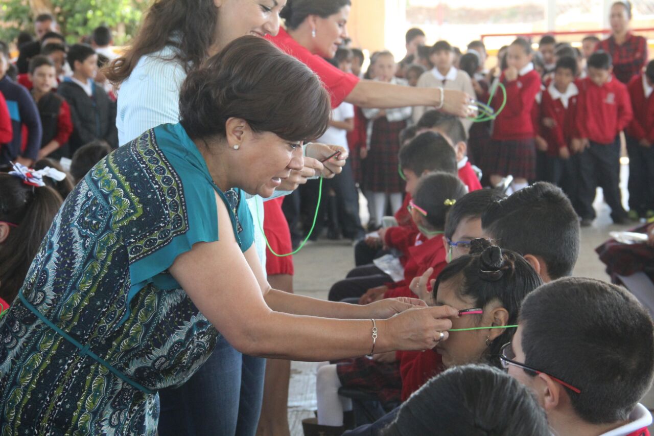 ZACATECAS. Como parte del programa Ver Bien para Aprender Mejor, la alcaldesa de la capital zacatecana, Judit Guerrero López, y Cristina Rodríguez Pacheco, presidente honorífica del Sistema Estatal para el Desarrollo Integral de la Familia (SEDIF), de manera gratuita, entregaron 170 anteojos a igual número de estudiantes.