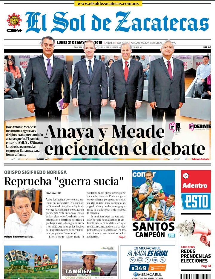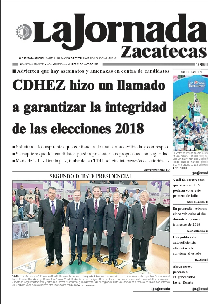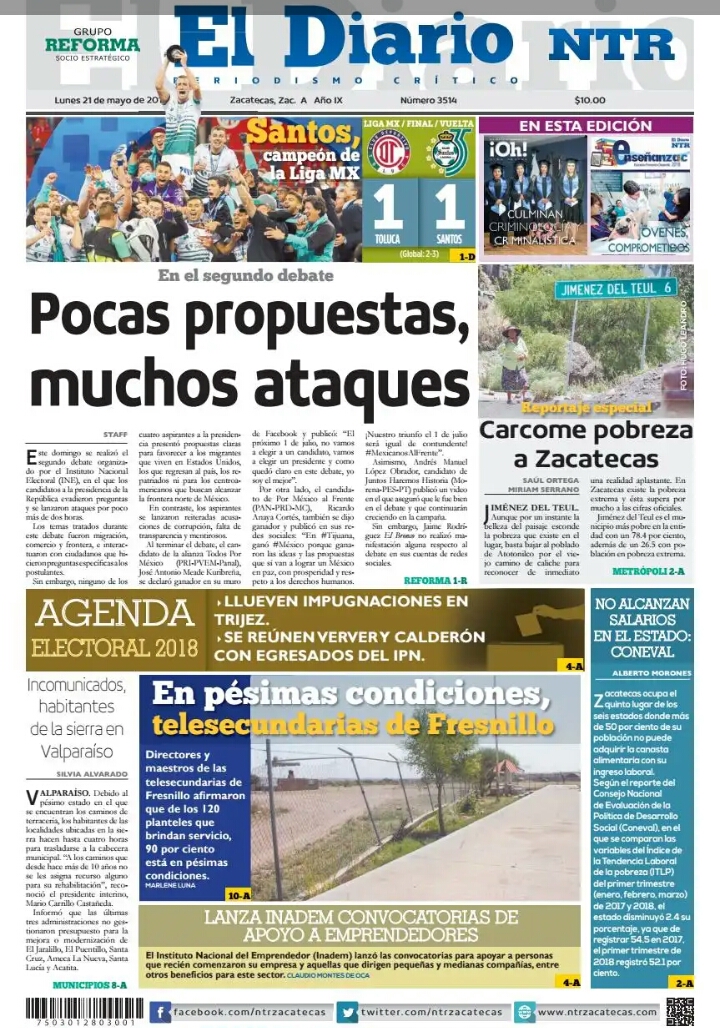 Locales Portadas de diarios impresos Zacatecas 21 de mayo Admin 21 mayo, 2018 133 Views Puedes compartir esta noticia en tus redes sociales.