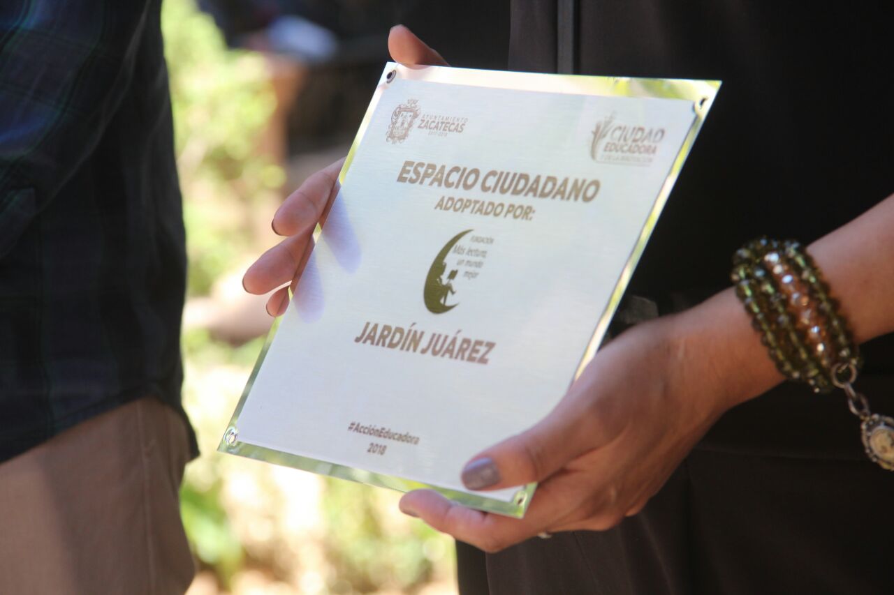 ZACATECAS. El Jardín Juárez se llenará de libros y arte, luego de que la asociación civil Más Lectura, un Mundo Mejor, a cargo de Selene Salas Sánchez, lo recibiera en adopción, como parte del programa Zacatecas con Sustentabilidad.