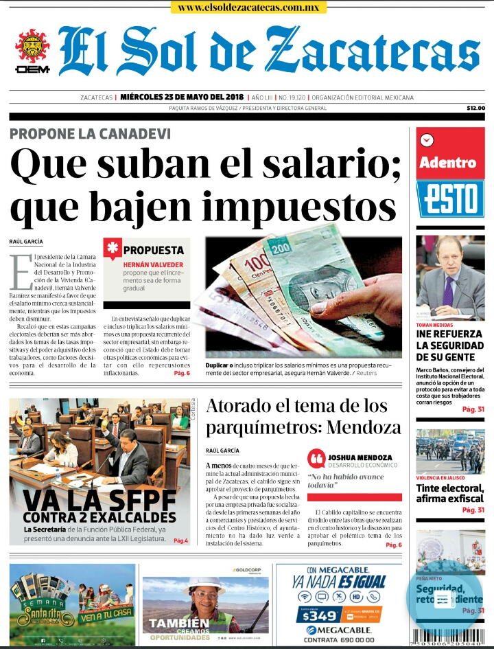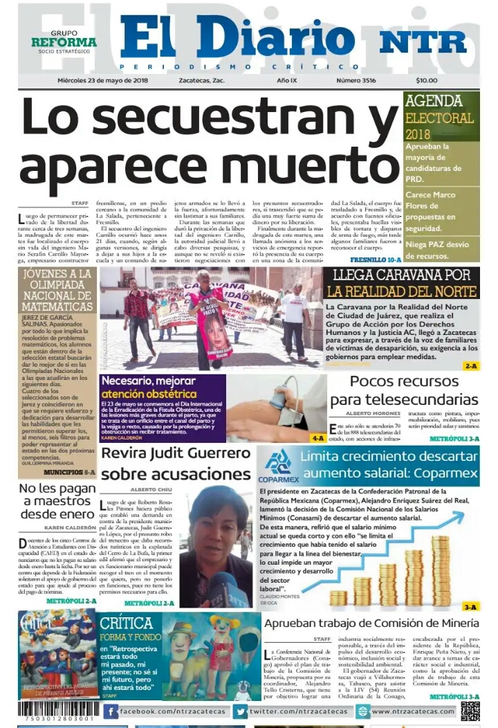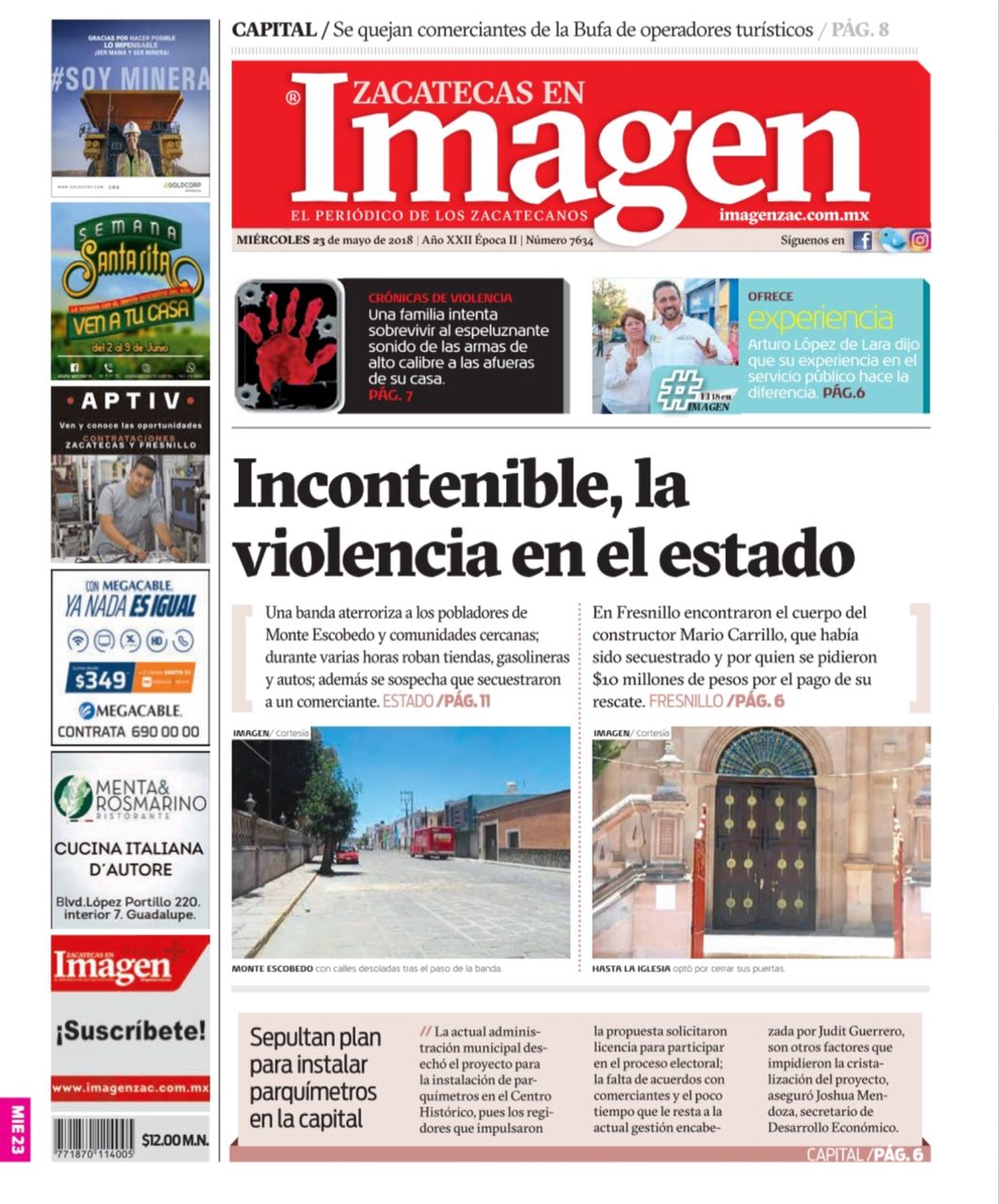 Locales Portadas de diarios impresos Zacatecas 23 de mayo Admin 23 mayo, 2018 103 Views Puedes compartir esta noticia en tus redes sociales.