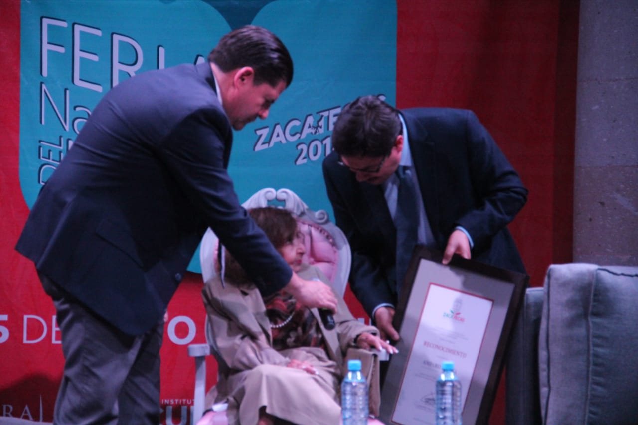 “Este encuentro con los libros y las palabra contribuye a la formación de ciudadanos”, dijo Vázquez Sosa, quien, acompañado por Víctor Manuel Rentería, entregó a Amparo Dávila un reconocimiento por su obra, se rige bajo el amor, la muerte y la locura con un sello único.