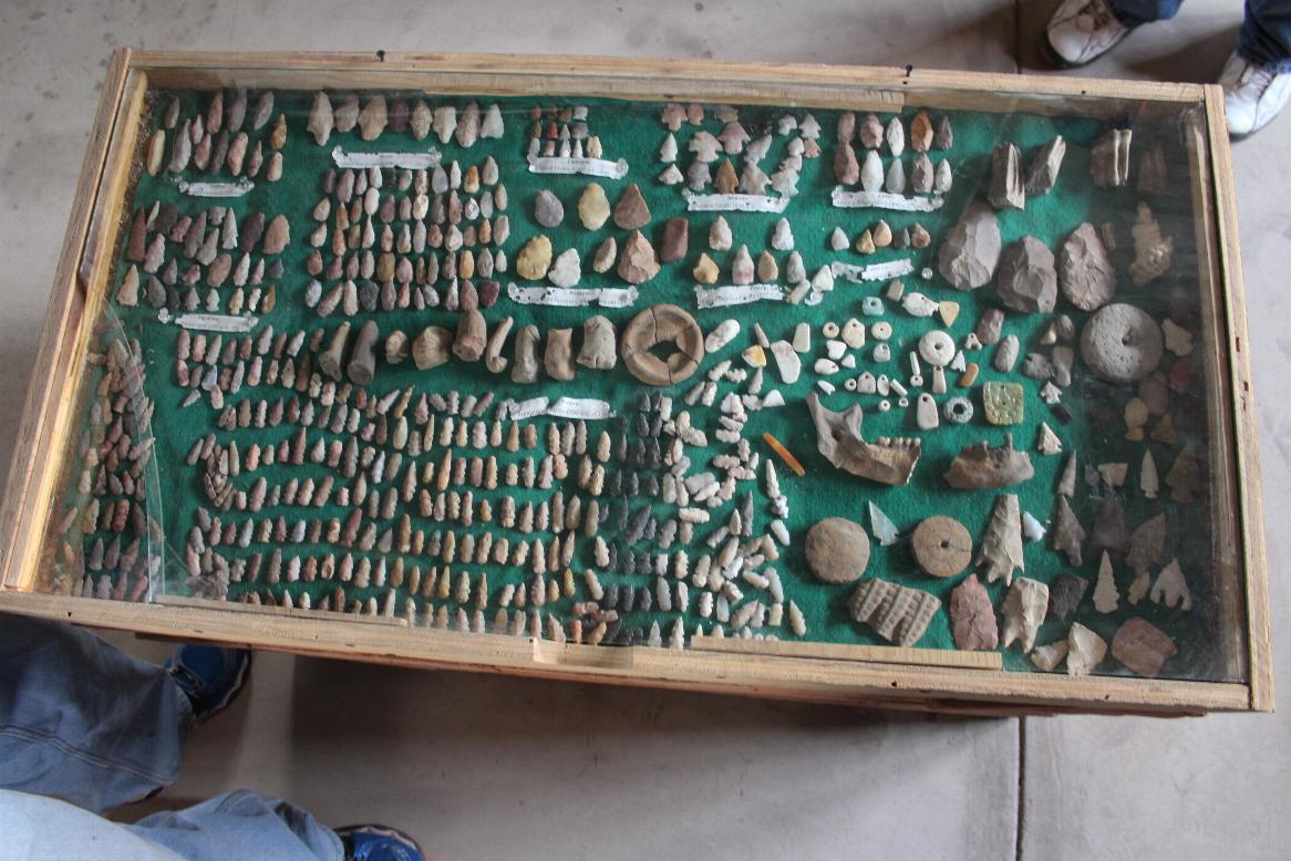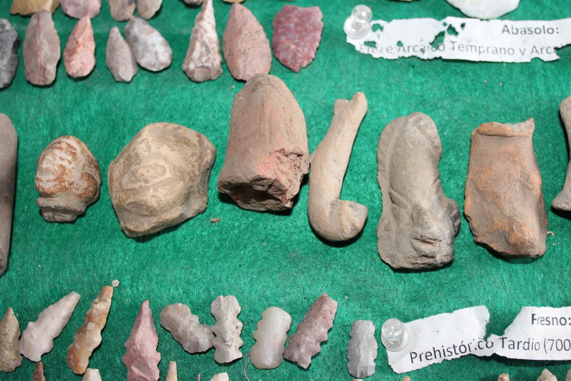 Entre los objetos que muestra destaca un fragmento de la quijada de un nativo de esta tierra, puntas de lanza de distintos tamaños que eran utilizadas para cazar pájaros, conejos, víboras, venados y jabalíes, fauna que hoy en día aún predomina en la zona.