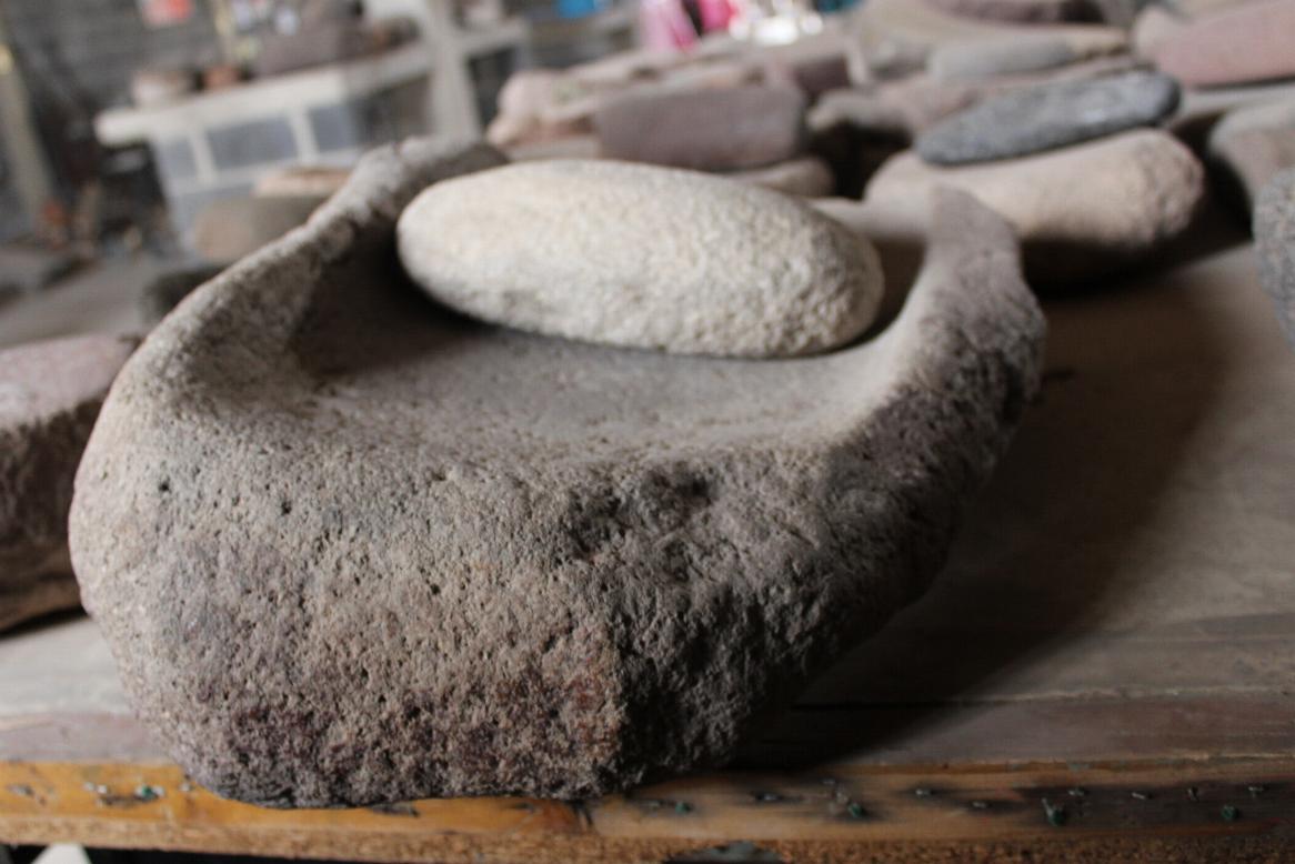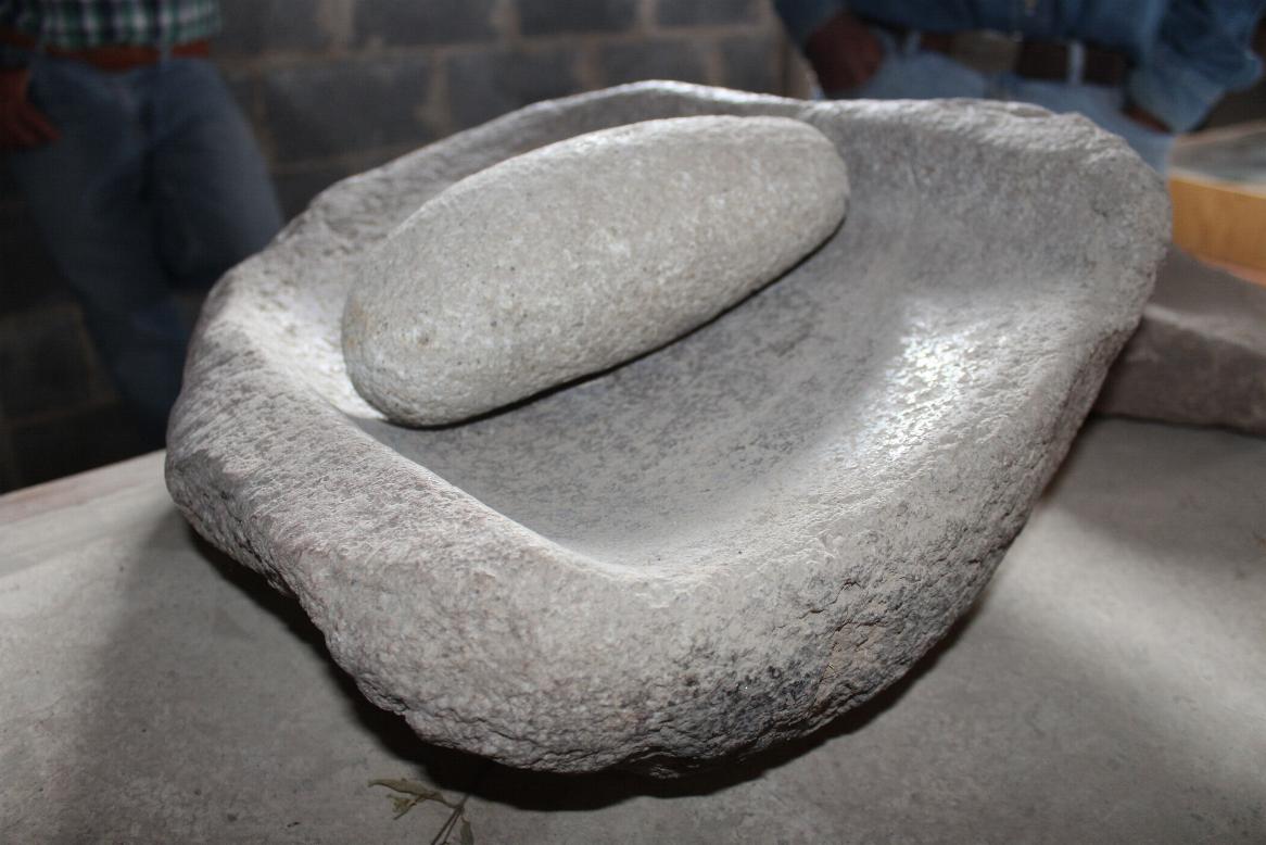 En otra mesa se exhiben piedras ovaladas que eran utilizadas como mazo o como honda, para el golpeo y tallado de herramientas e inclusive para destilar flora del lugar, como la lechuguilla y la palma.