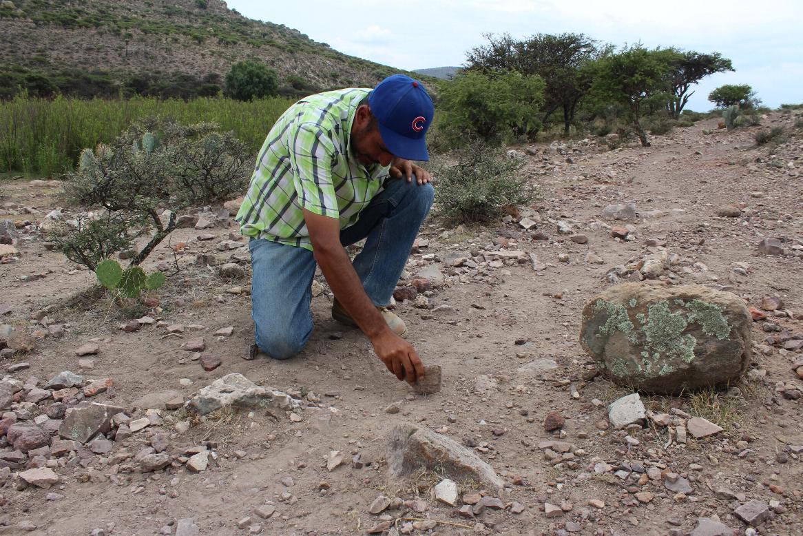 Se trata de un ovejero que a sus 25 años, en medio del ocio que trae consigo pastorear chivas y borregas en el monte, encontró en los suelos del ejido de San Juan de la Casimira, Fresnillo, una pequeña piedra blanca que llamó su atención por la forma que tenía: era una punta de flecha antigua que perteneció a una civilización de la Gran Chichimeca asentada en este lugar hace 6 mil años.