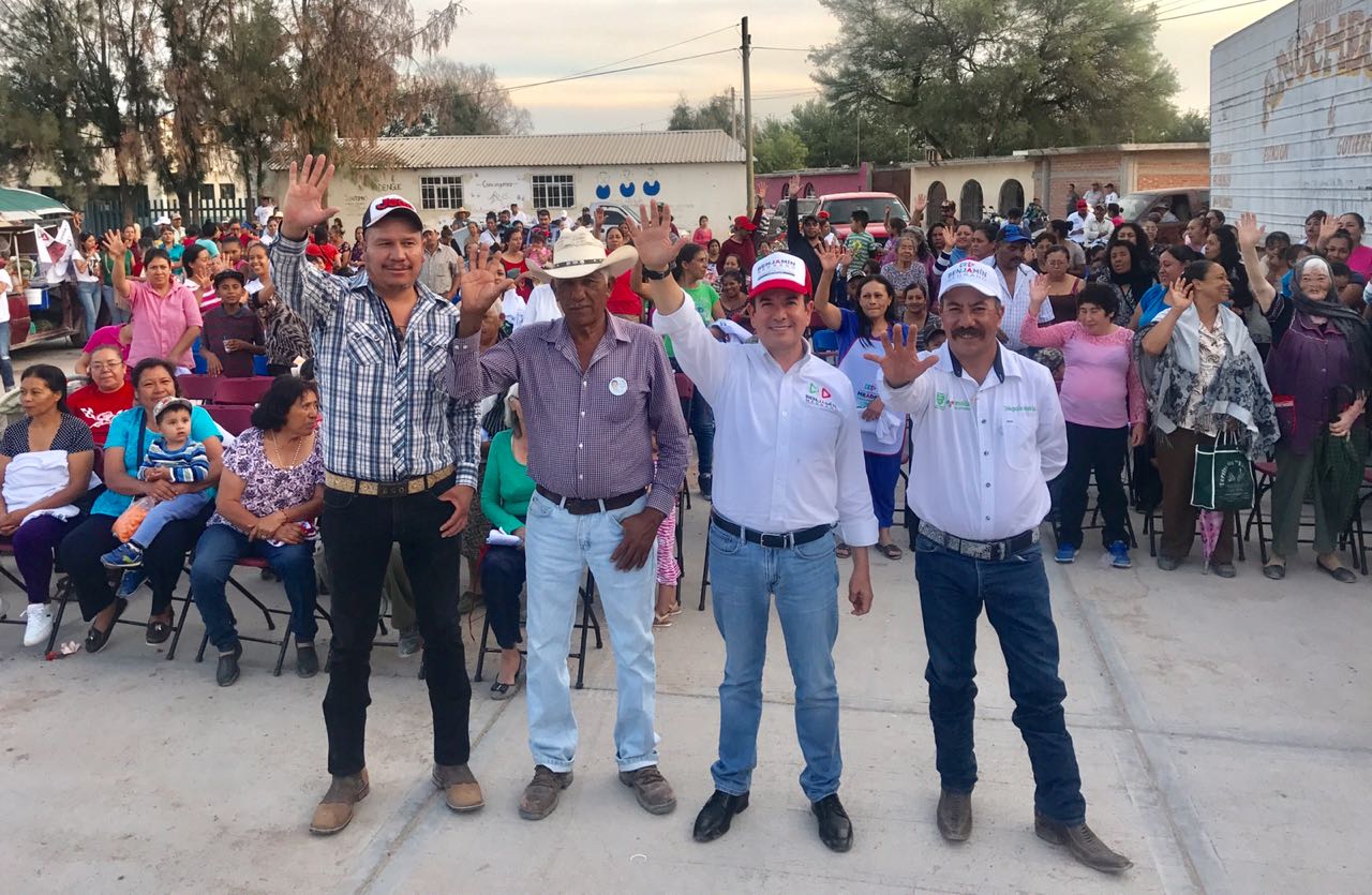 FRESNILLO. Benjamín Medrano Quezada, candidato a presidente municipal de Fresnillo por el Partido Revolucionario Institucional (PRI), promovió su proyecto en las comunidades Chichimequillas y El Mezquite, donde garantizó que luchará por fortalecer a Fresnillo en todos los ámbitos.