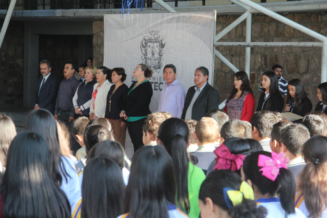 “A nosotros nos corresponde brindar mejoras en infraestructura y las condiciones para que se sientan cómodos en sus centros escolares, y a ustedes les toca cuidarse, cuidar su entorno, a superarse cada día, a decir no a las drogas, a no embarazarse a temprana edad”, expresó la presidente municipal de Zacatecas.