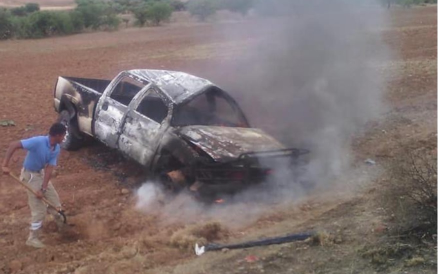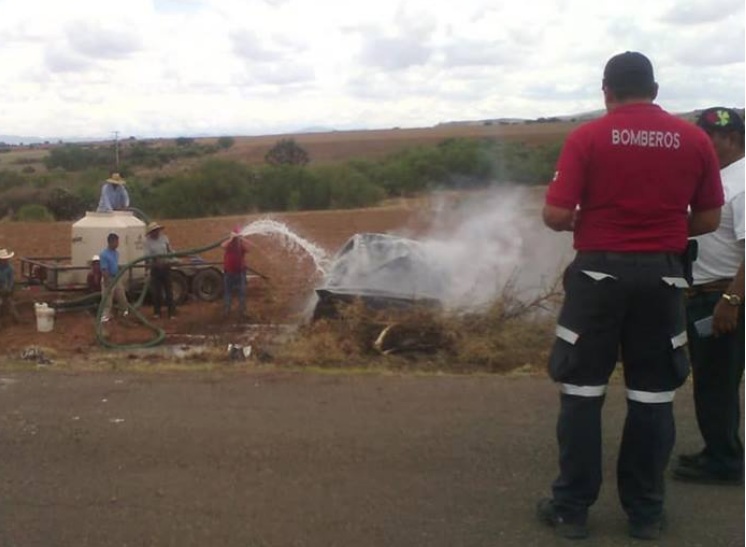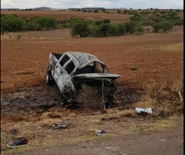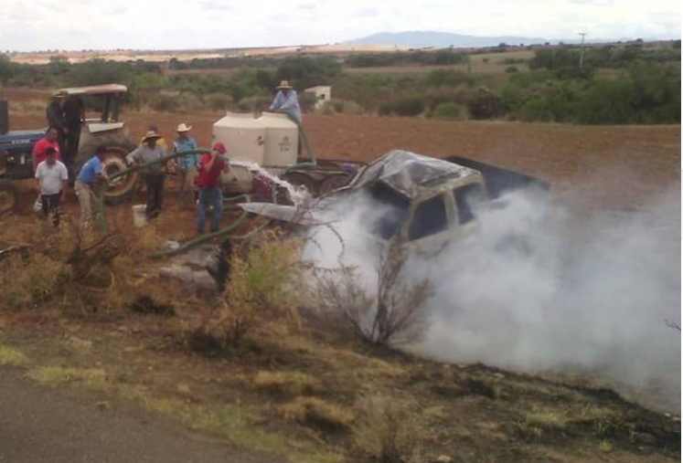 La volcadura y posterior incendio de una camioneta tuvo lugar a las 13:40 horas de este martes sobre el kilómetro 27.5 de la carretera Cantuna (Sain Alto)-Río Grande, en el tramo que conduce a la comunidad Cañas.
