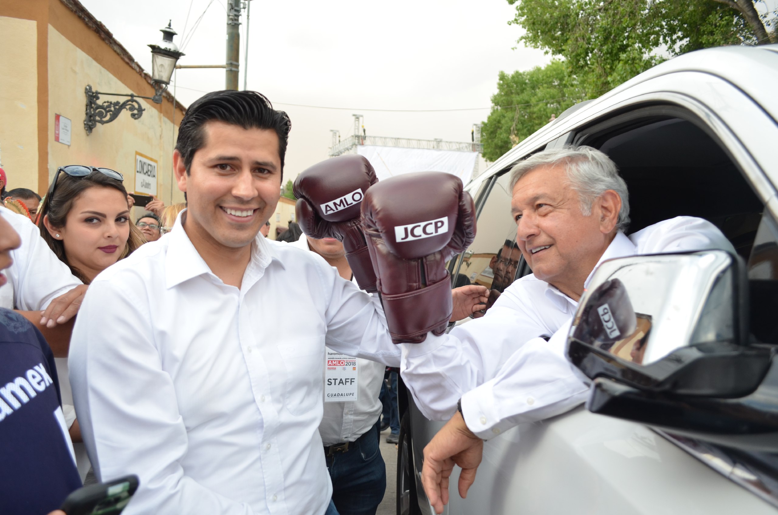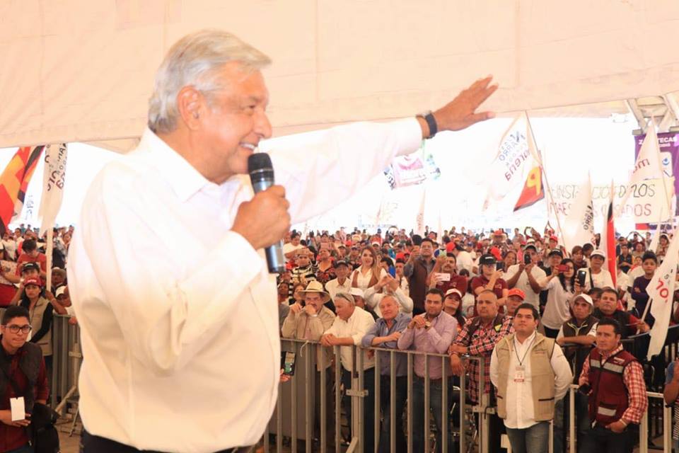 Respaldado por Julio César Chávez Padilla (candidato a alcalde de Guadalupe), Ulises Mejía Haro (por Zacatecas capital), Saúl Monreal Ávila (para Fresnillo), José Narro Céspedes y Soledad Luévano Cantú (a senadores), el aspirante presidencial de Juntos Haremos Historia dejó en claro que es partidario de la no reelección.