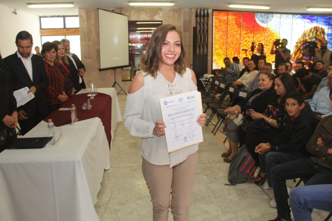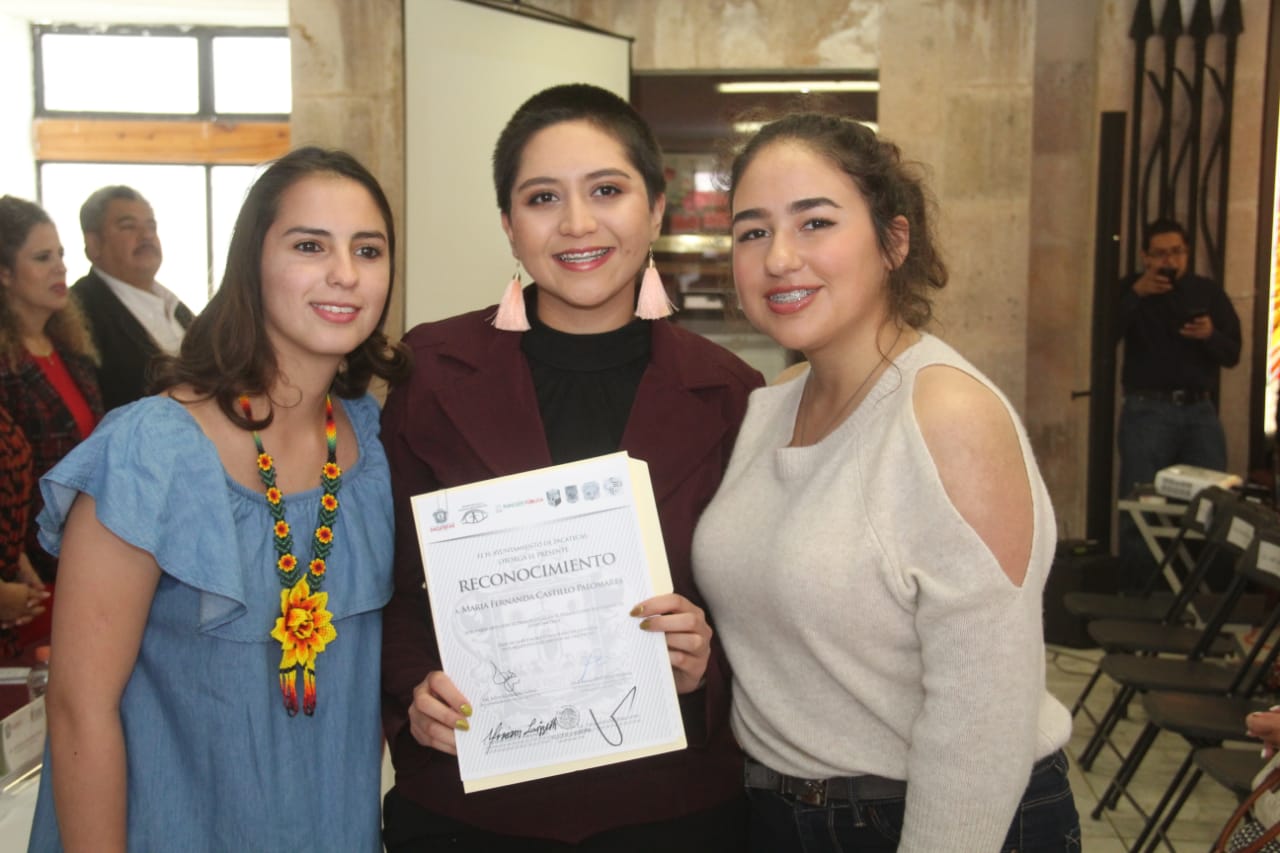También se otorgaron menciones honoríficas a Jorge Osvaldo Hernández García, por el ensayo “Sus inconvenientes y oportunidades, una ligera revisión al fenómeno de rendir cuentas”; y a Frida Esmeralda Muñiz Álvarez, por el cortometraje “¿Y tú?”; a cada uno se le otorgaron mil 500 pesos.