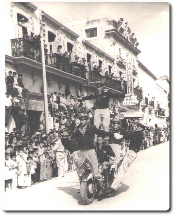 Con una motocicleta Harley Davidson, modelo 1950, 165 cc, de 6 CV de potencia, a la que llamaban La Paloma, por ser de color blanco, en el desfile civil del 20 de noviembre de 1964, realizado en el Centro Histórico de Zacatecas, debutó el primer escuadrón de motociclismo acrobático a cargo de la Dirección de Tránsito del gobierno del estado.