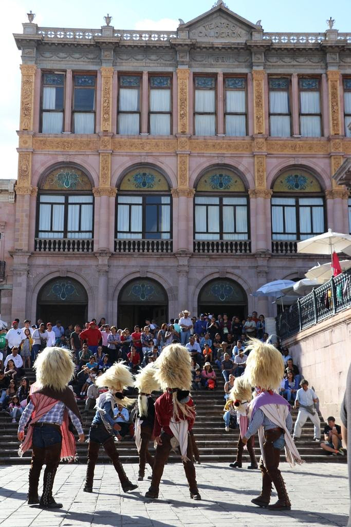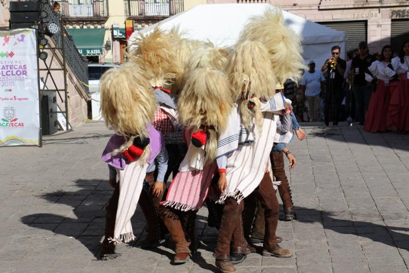 ZACATECAS. Extraordinarias representaciones de fiestas religiosas y paganas de comunidades y regiones de Río Grande y Juchipila se presentaron en la Plazuela Goitia, en las actividades del Festival Zacatecas del Folclor Internacional 2018.
