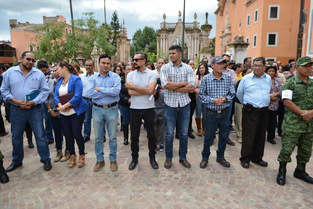 Los participantes se reunieron en la Plaza Cívica de la presidencia municipal, y en un minuto de silencio recordaron con honor y respeto a las personas que perdieron la vida en esos sucesos.