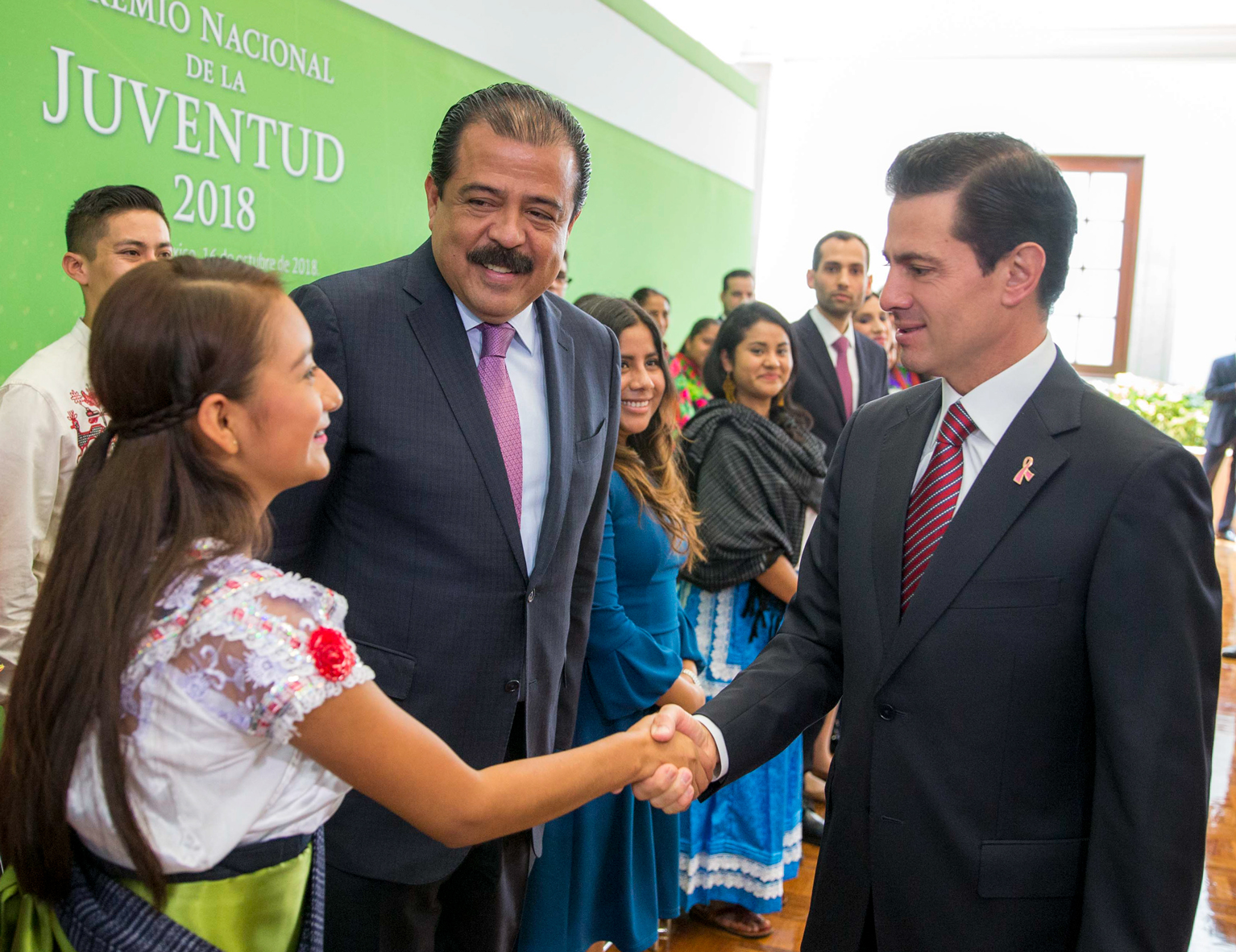 CIUDAD DE MÉXICO. Este martes se entregó el Premio Nacional de la Juventud 2018 por el presidente Enrique Peña Nieto a 20 niños y jóvenes que realizan actividades a favor de un mejor país.