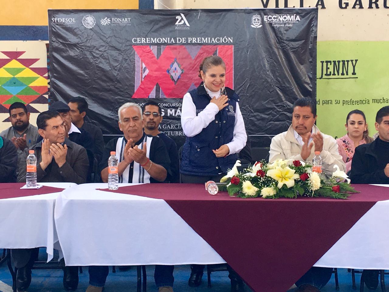 En presencia de autoridades de la Subsecretaría de Desarrollo Artesanal de la Secretaría de Economía de Zacatecas (Sezac); el Fondo Nacional para el Fomento de las Artesanías (Fonart) y del Ayuntamiento de Villa García, Salas Díaz recibió el premio único, gracias a un tapete color natural llamado Los claveles.