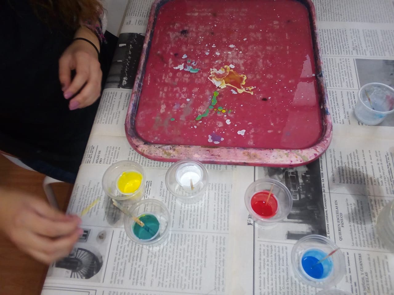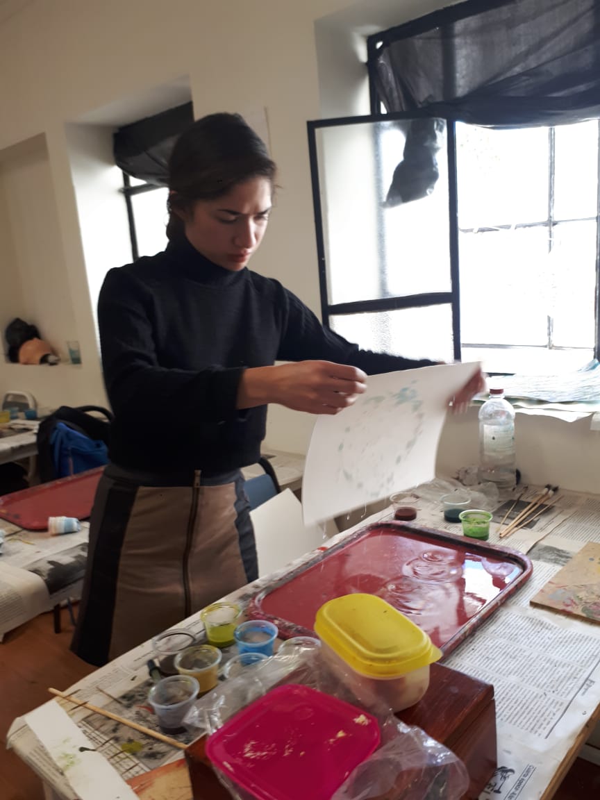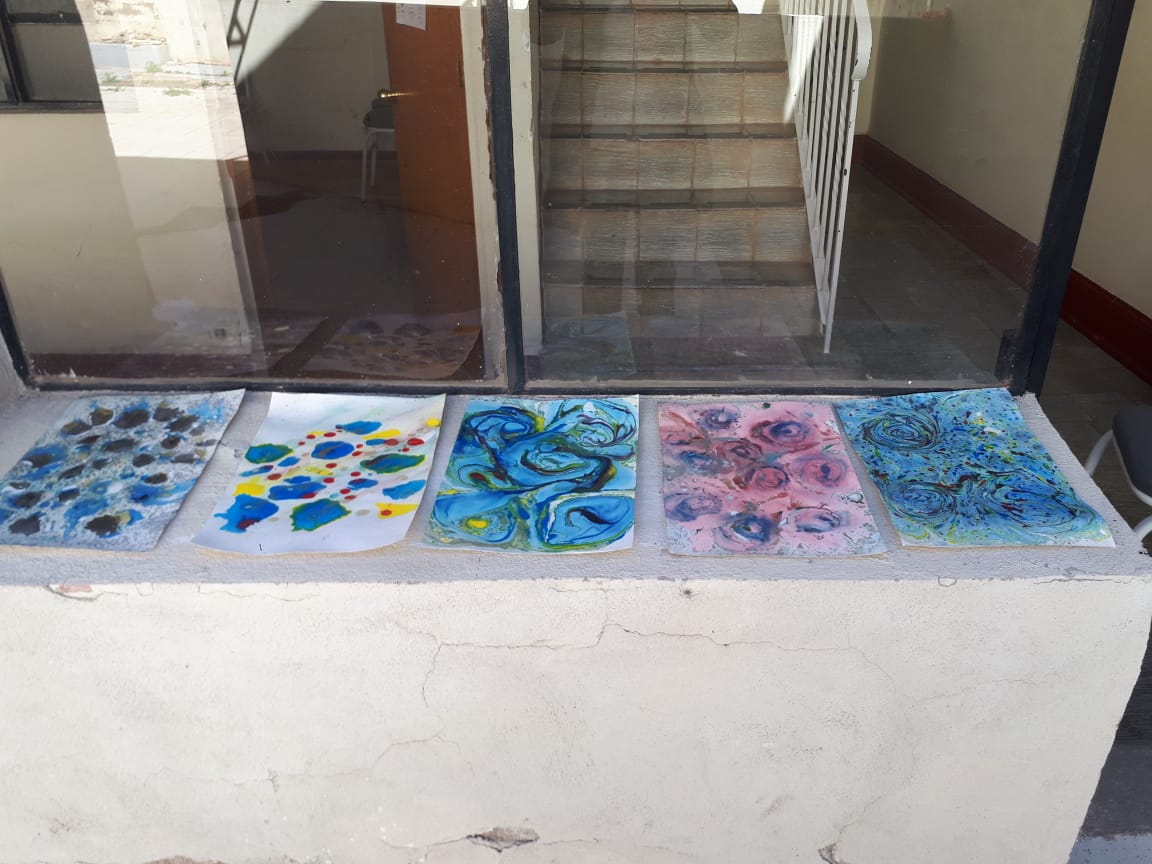 La técnica aprendida en este taller no varía mucho del procedimiento en el que se trabaja el Ebrú en otras zonas del mundo, salvo con la variedad de utilizar chía para dar al agua una consistencia más espesa.