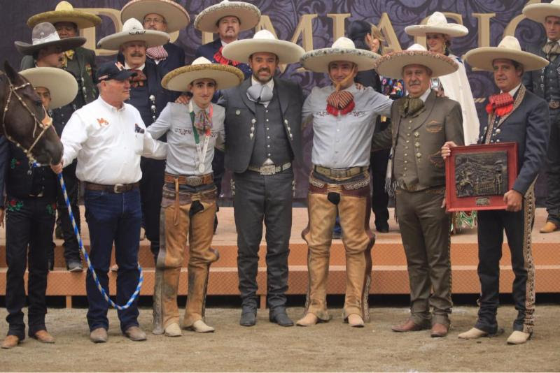 Junto con Dávila Salas, el titular del Ejecutivo entregó las preseas a Alejandro Coss y León Jiménez del estado de Jalisco, primer lugar en la categoría de Charro Completo.